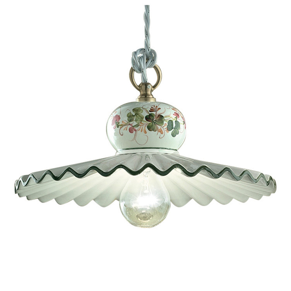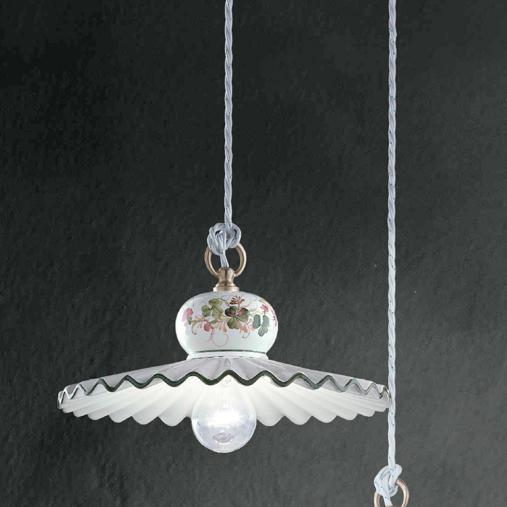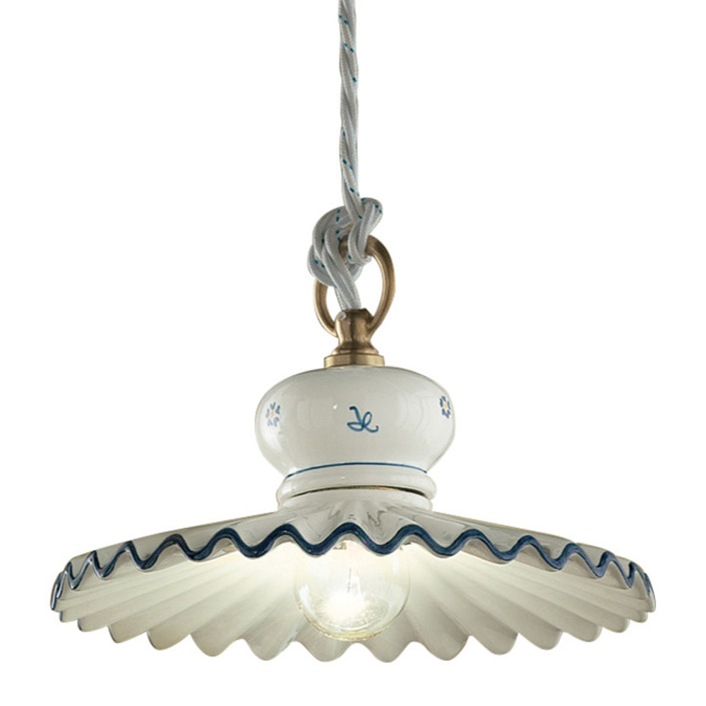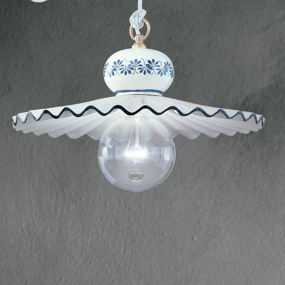 Lámpara colgante artesanal en metal y cerámica pintada a mano, 3 tamaños fabricada en Italia por Ferroluce.
