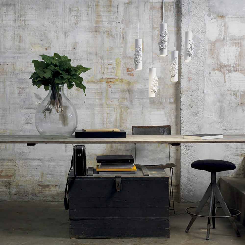 El sencillo cilindro de cerámica está envuelto en un torbellino de flores que se destaca por la pureza de las líneas estilísticas y el material. No hay excesos, el diseño perfectamente equilibrado se puede insertar así en varios contextos , desde los más modernos para un toque de pura elegancia, hasta los más clásicos e industriales, para una atmósfera contemporánea y un contraste que emociona.