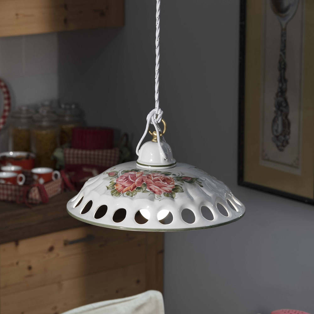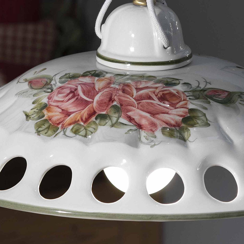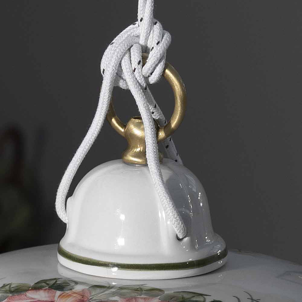 Lámpara de suspensión en metal y cerámica artesanal con cintas, fabricada en Italia por Ferroluce.