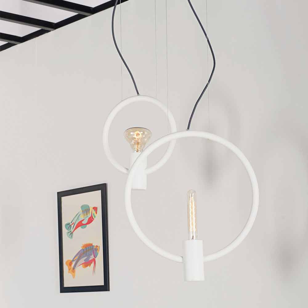 estructura de acero pintado RAL con forma redonda disponible en dos tamaños para poder satisfacer las más variadas demandas. Ideal para iluminar ambientes como cocinas, dormitorios pero también salones y comedores con un diseño moderno y extravagante.