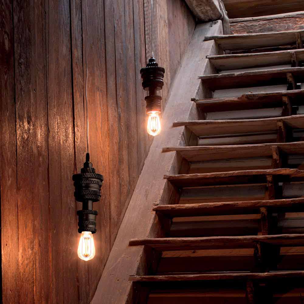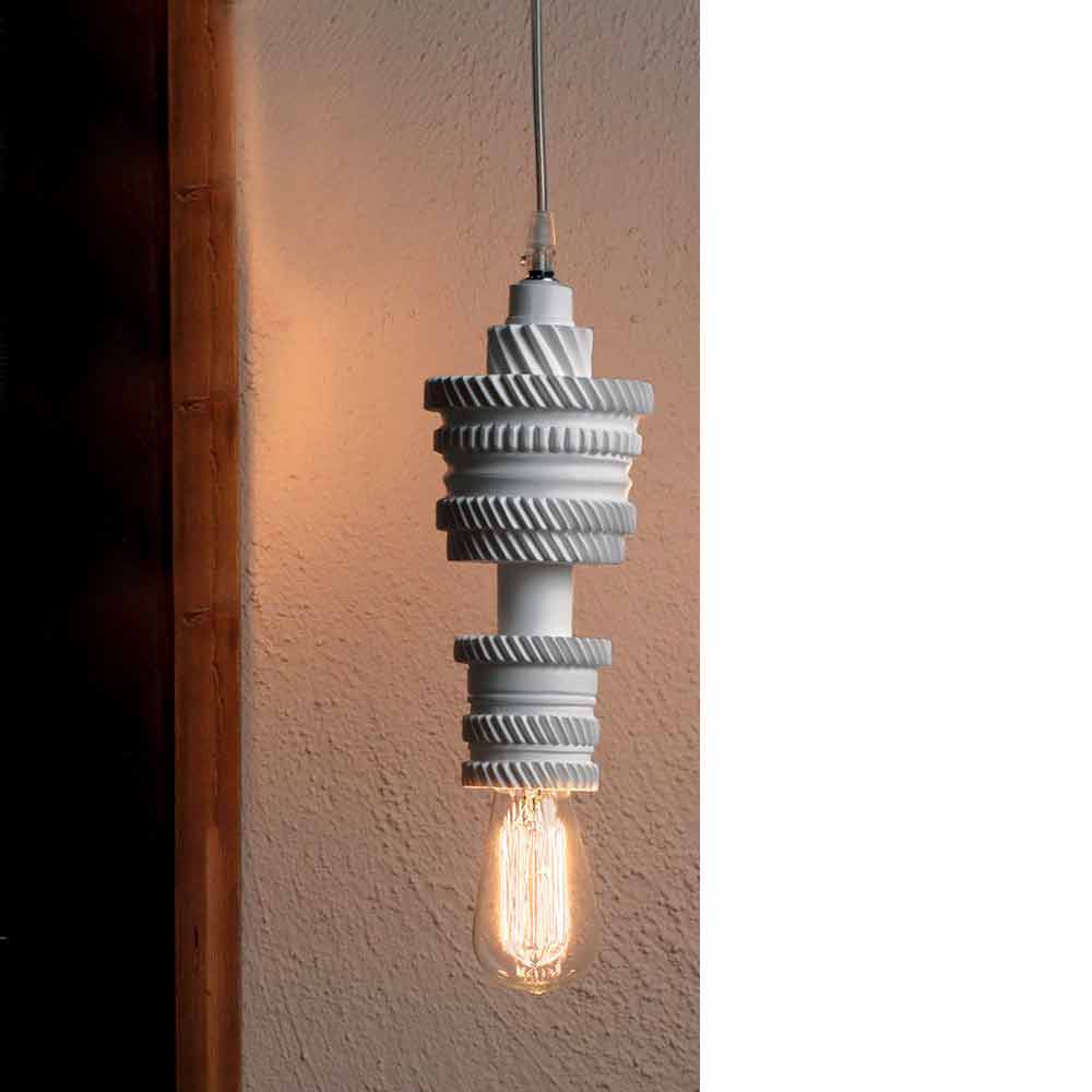 Esta original y singular lámpara de suspensión es significativa de una evolución futurista que implica un rediseño en cuanto a la parte compositiva del producto, consistente en un objeto de gran valor técnico.