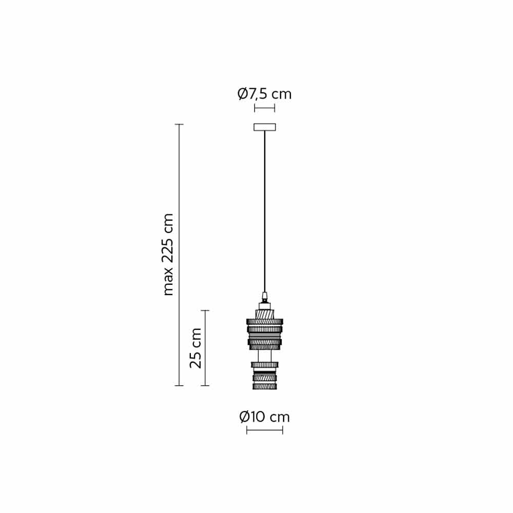 La lámpara está fabricada en cerámica en tres acabados, como material que representa el origen, la maleabilidad, la creación y que conduce directamente a los orígenes de nuestra cultura.