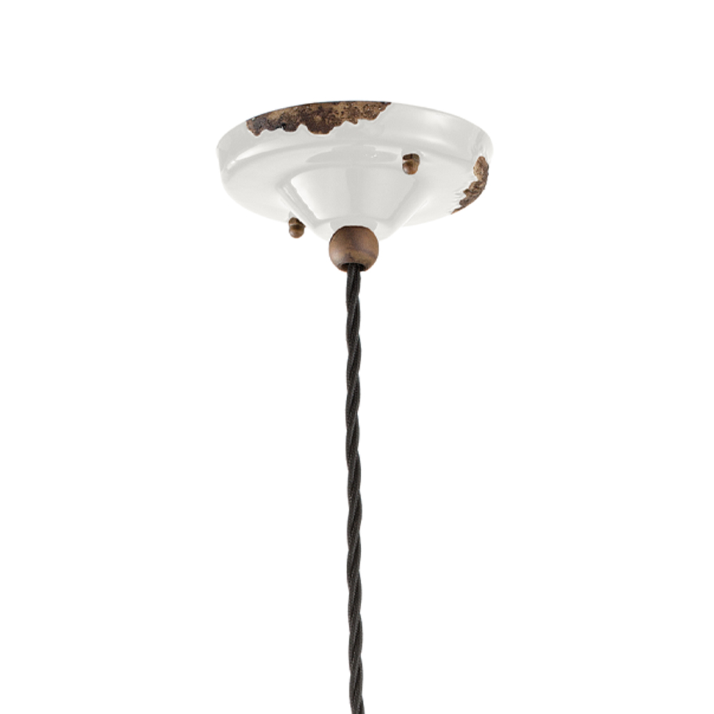 Lámpara colgante de diseño industrial hecha a mano en cerámica, cristal y metal fabricada en Italia por Ferroluce.