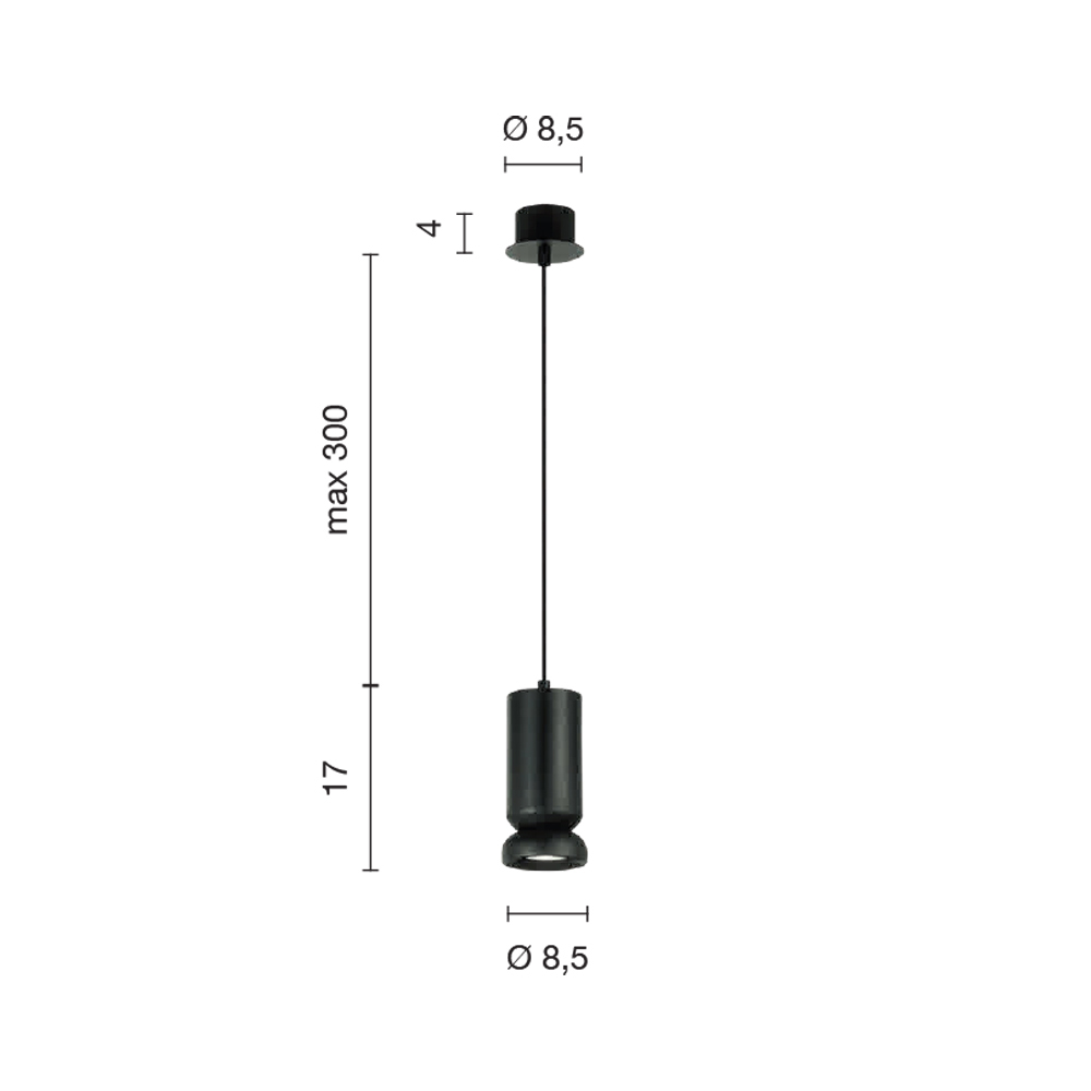 Dimensiones:- base en techo: diámetro 8,5cm x altura 4cm
