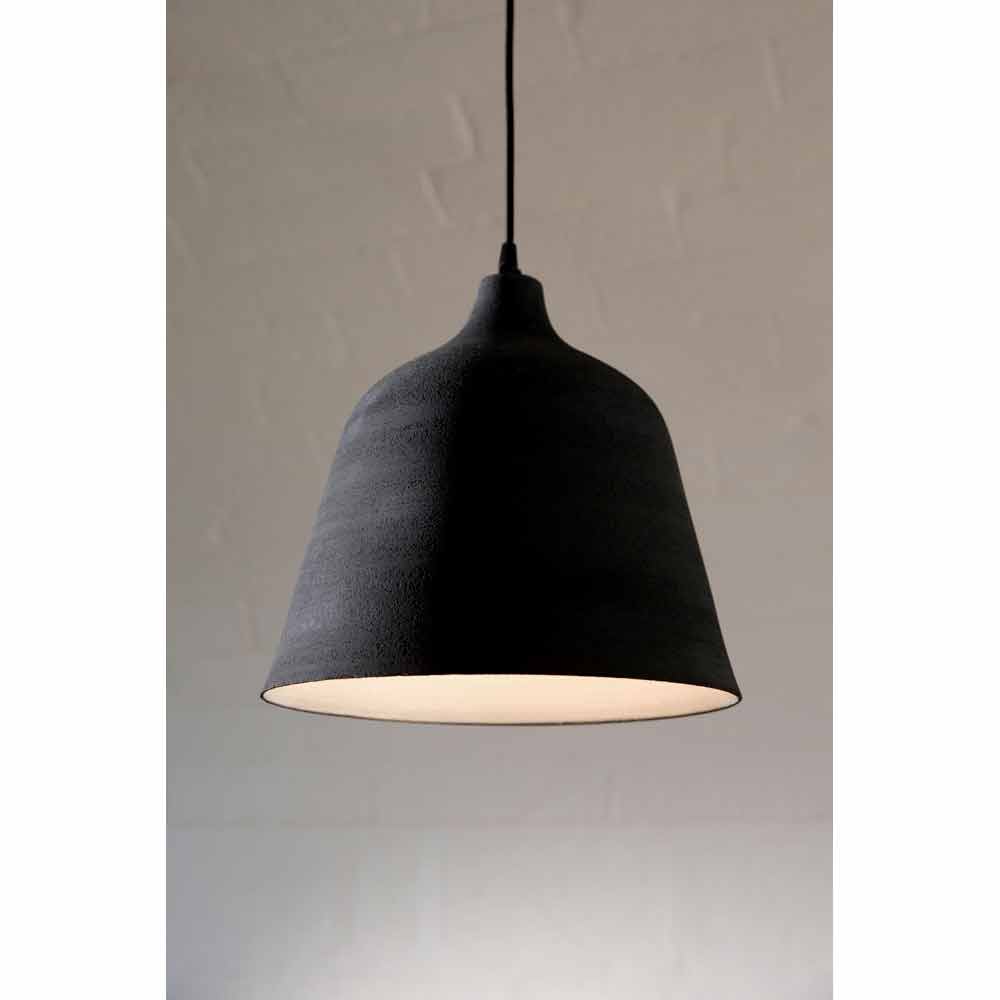 La lámpara está hecha de mate antracita de gres, un material continuidad de composición que difiere de cerámica para una mayor resistencia a los agentes atmosféricos, fuego y los choques térmicos. Interior esmaltado en blanco.