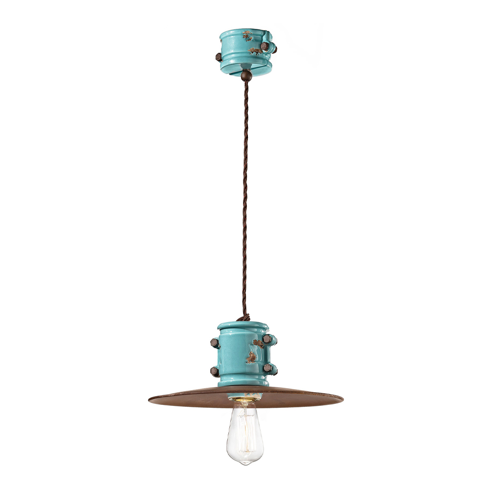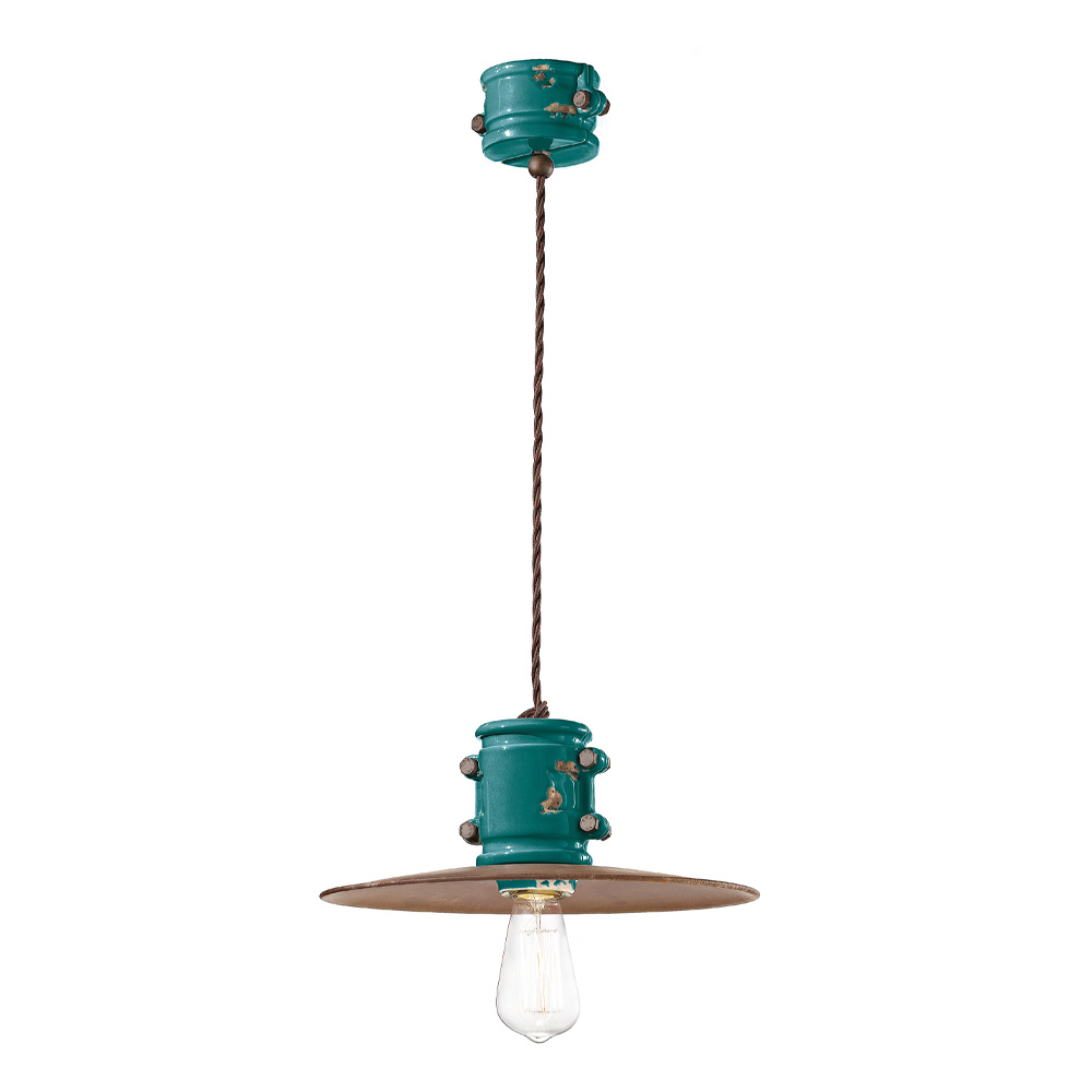 Lámpara colgante artesanal en cerámica y metal de diseño industrial fabricada en Italia por Ferroluce.