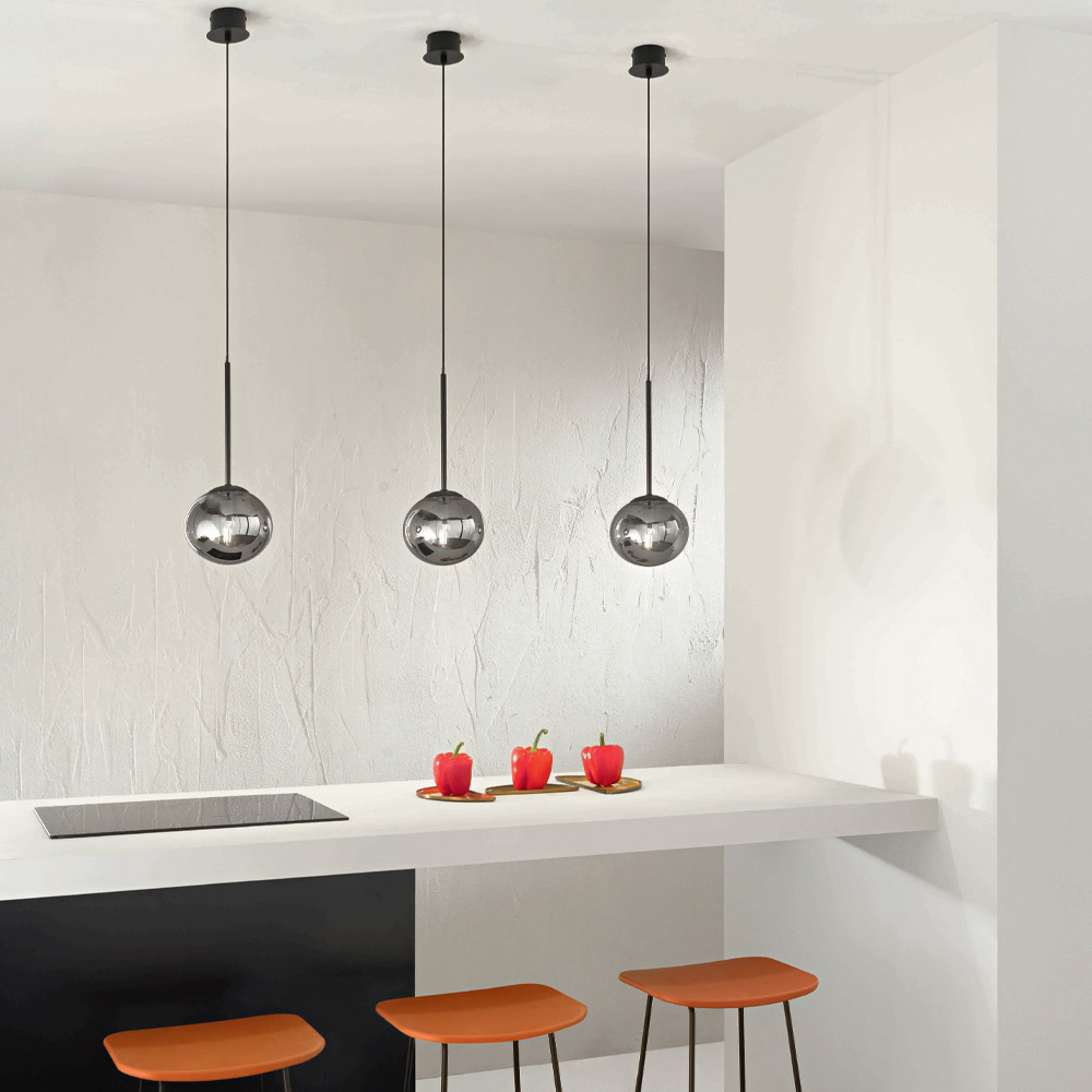Lámpara de suspensión con luz LED en metal pintado y vidrio soplado Made in Italy