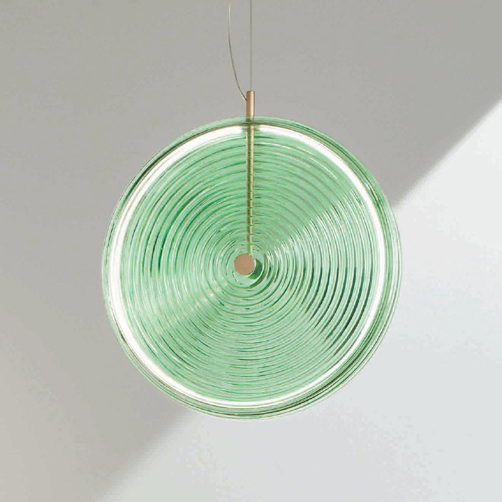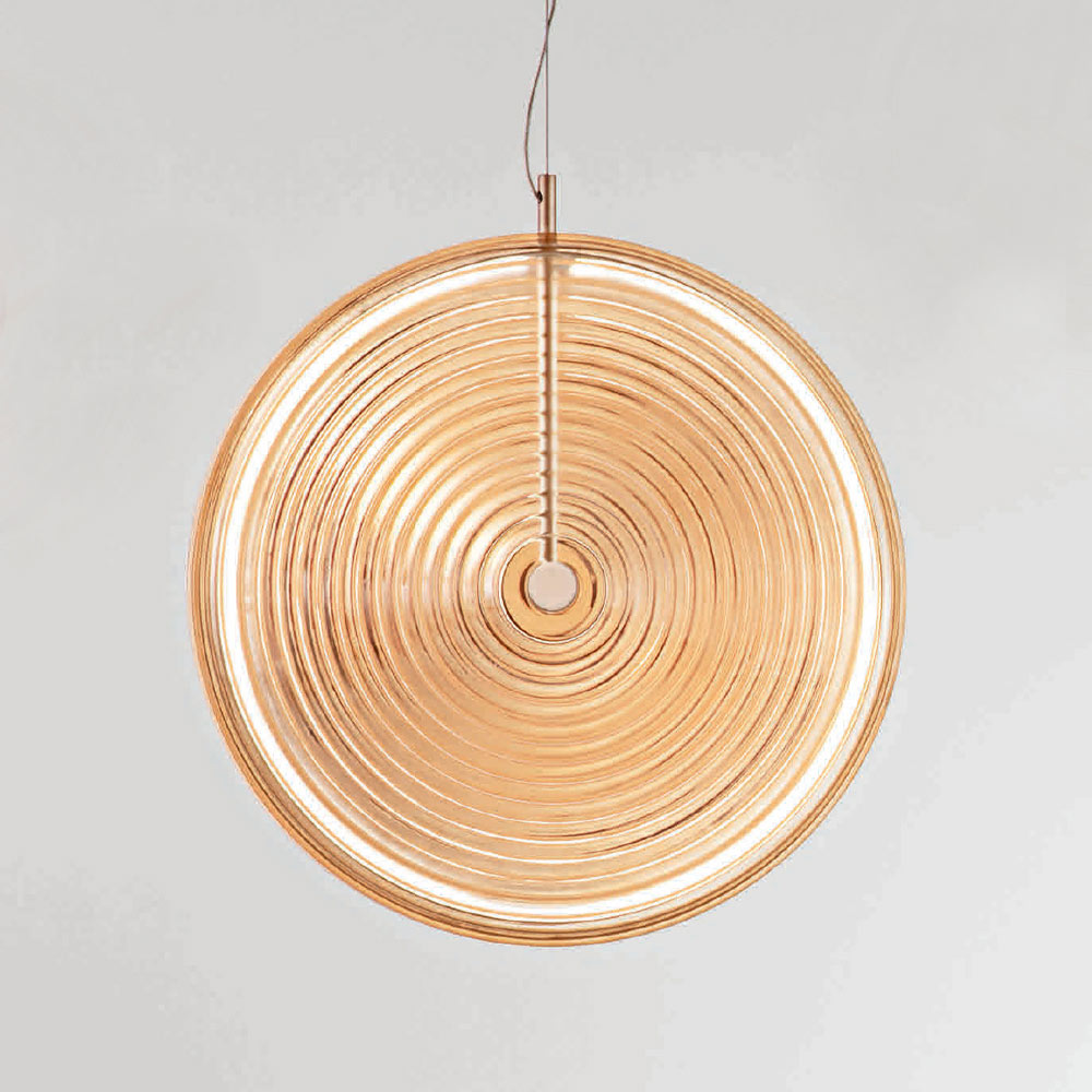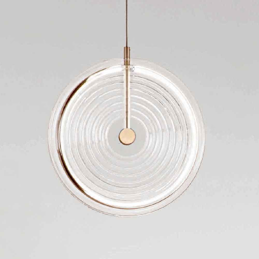 metal pintado acabado oro, cristal decorado con líneas concéntricas con luz LED y