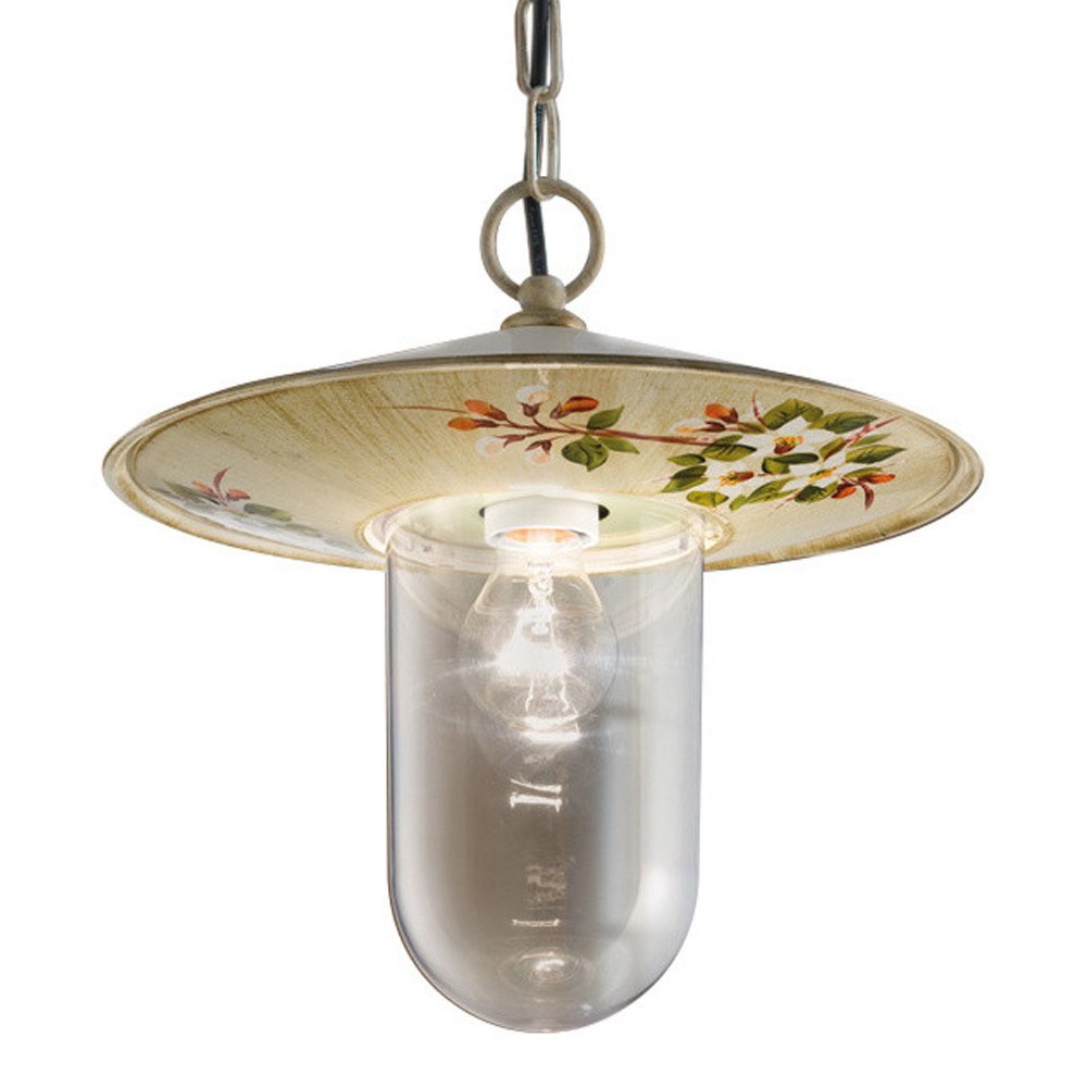 Esta lámpara de suspensión para el jardín está realizada íntegramente en aluminio con una decoración floral pintada a mano para un estilo clásico y armonioso entre formas y colores.