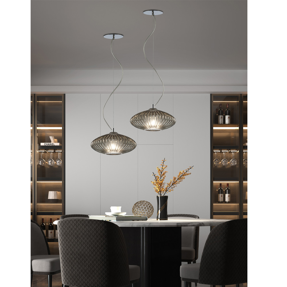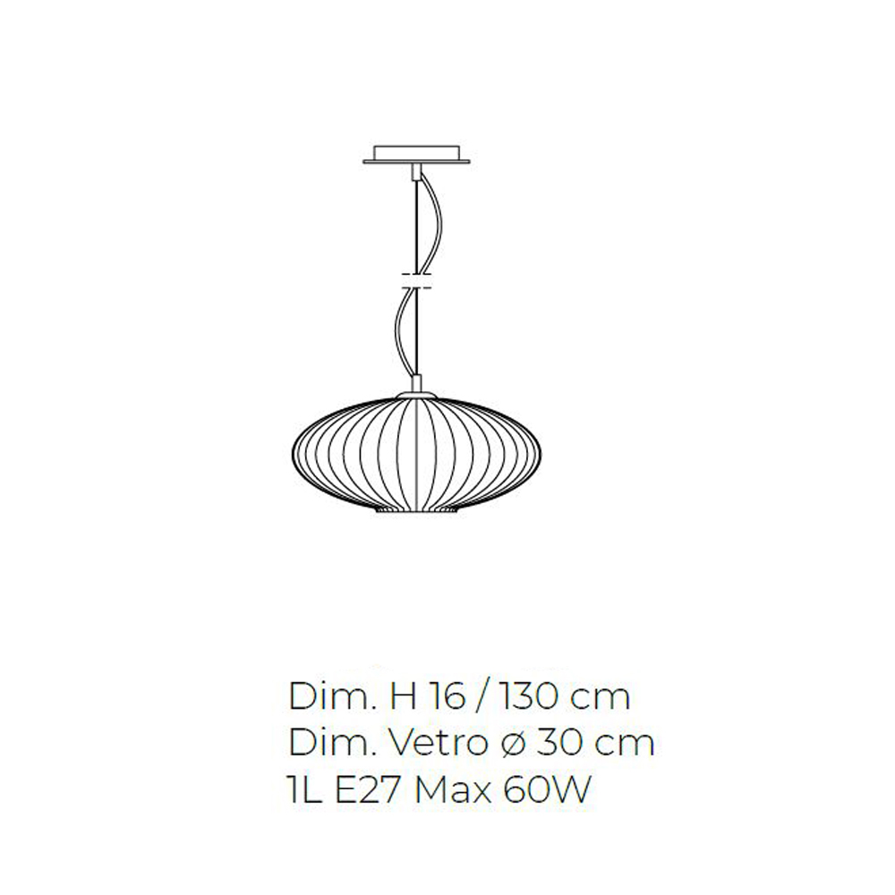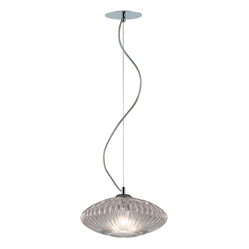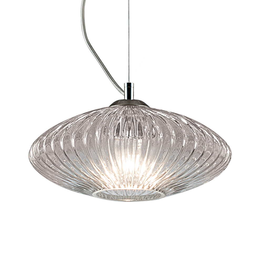 Lámpara colgante de vidrio veneciano soplado a mano con acabado acanalado.