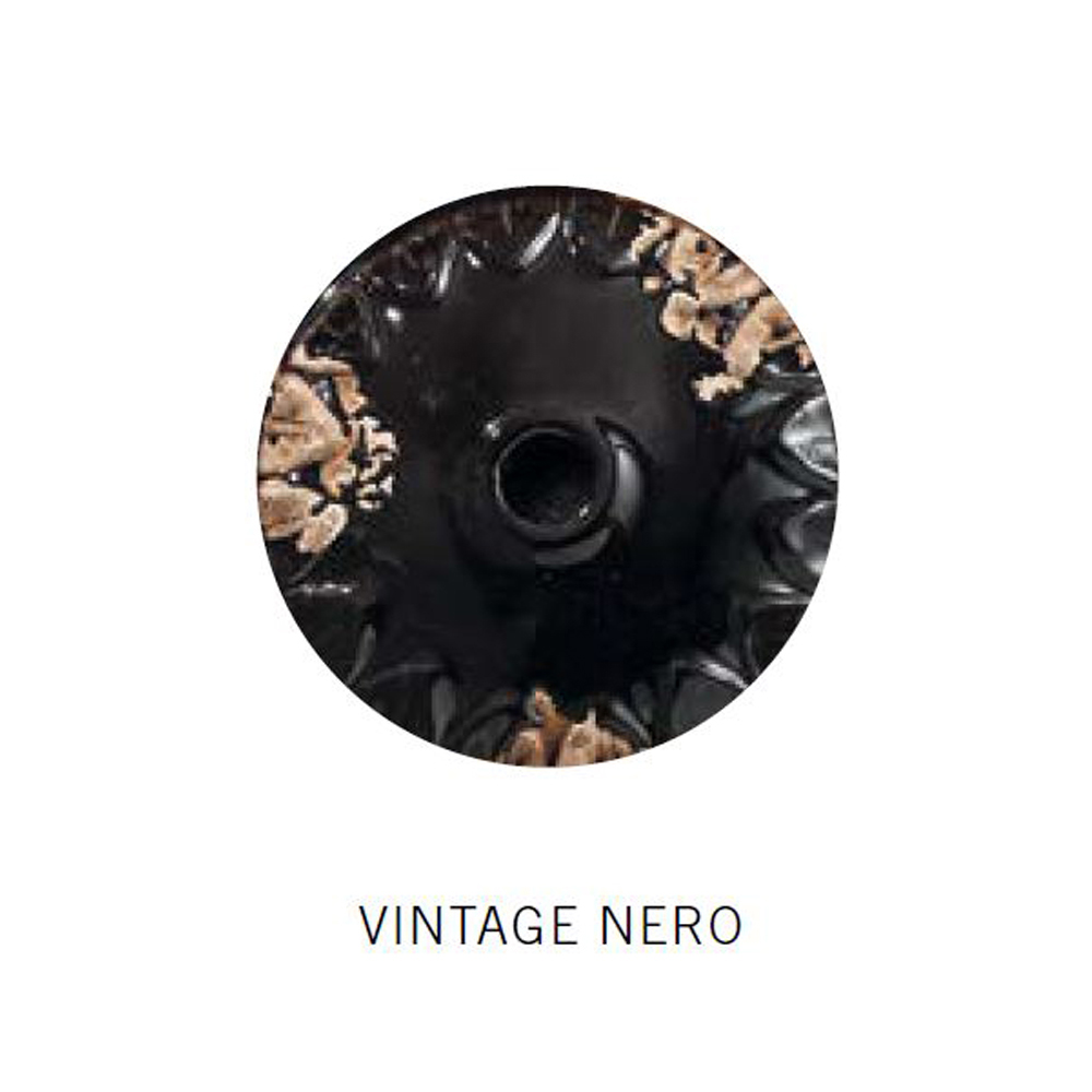 un estilo industrial con un efecto desconchado y falsamente descuidado obtenido a través de pasos técnicos precisos, demostrando el profundo saber hacer y la gran profesionalidad de los artesanos, en un