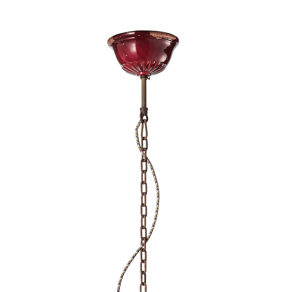 Lámpara de suspensión artesanal e industrial en cerámica y hierro, varios acabados fabricada en Italia por Ferroluce.