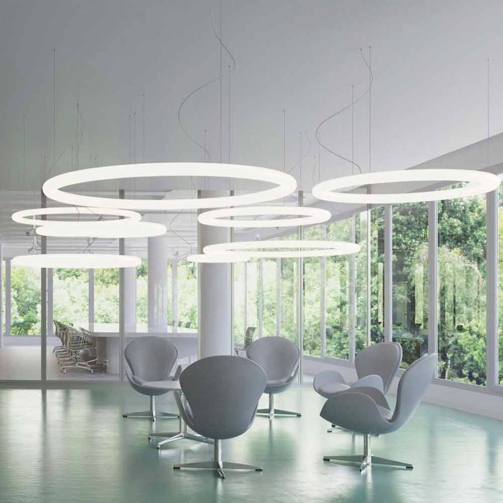 El diseño de este mueble moderno está perfectamente descrito por su nombre, Giotto. De hecho, su forma es un círculo perfecto caracterizado por una geometría esencial pero con un gran impacto visual enriquecido por el LED que, gracias a una luz homogénea y acogedora , crea efectos de iluminación perfectos tanto para espacios contract como para ambientes privados. Gracias a la posibilidad de regular la altura del producto, es posible utilizarlo individualmente para una solución más discreta pero siempre original, o incluso combinando los diferentes tamaños disponibles para crear maravillosas composiciones personalizadas dando vida a juegos de colores únicos y originales. luz dentro de la habitación.