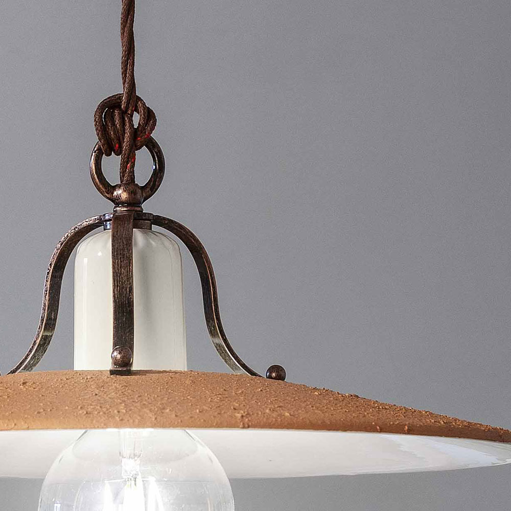 Lámpara de suspensión up and down en hierro y cerámica en bruto hecha a mano, 2 tamaños fabricada en Italia por Ferroluce.