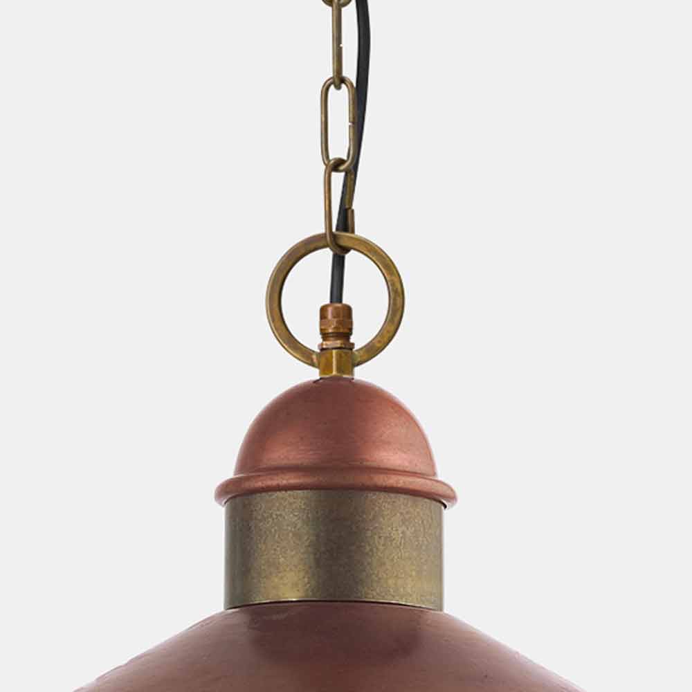 Lámpara colgante vintage en latón y cobre antiguo con cadena, made in Italy.