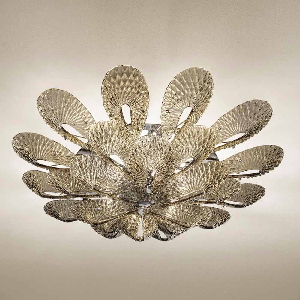 Lámpara de techo veneciana hecha a mano en vidrio y metal, Made in Italy.