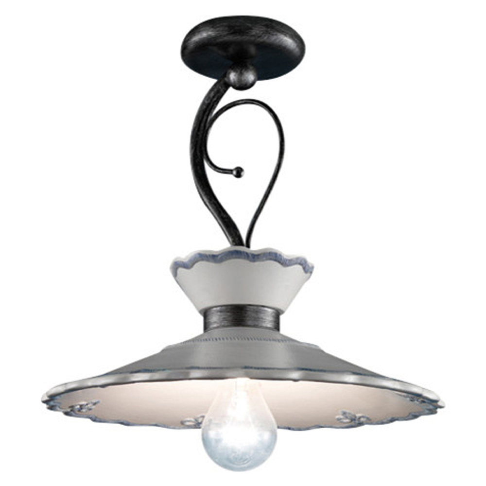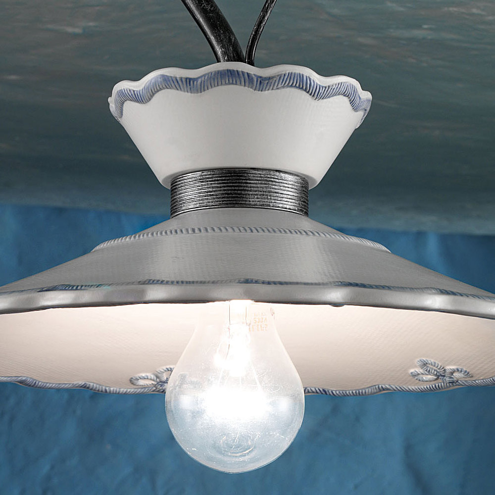 Lámpara de techo artesanal en metal y cerámica con efecto bordado, 2 tamaños fabricada en Italia por Ferroluce.