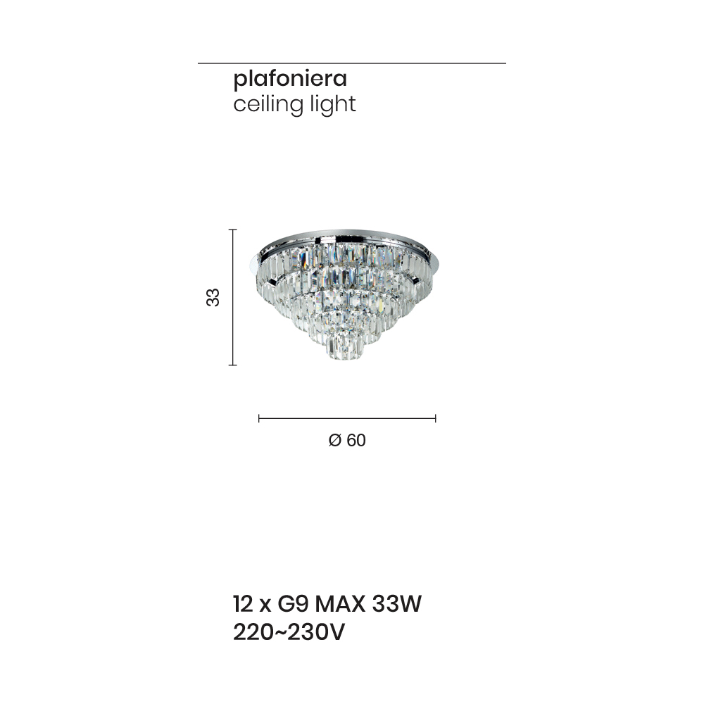 Este plafón de salón con 9, 12 o 16 luces es capaz de crear ambientes lujosos e importantes gracias a su diseño precioso y brillante.