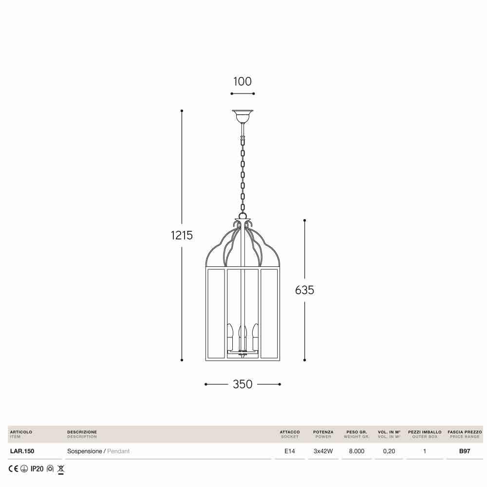 Lámpara de suspensión de hierro envejecido Jean Il Fanale
