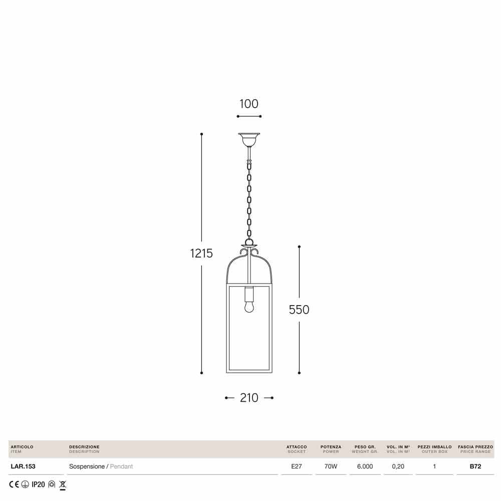 Lámpara de suspensión de hierro envejecido Jean Il Fanale