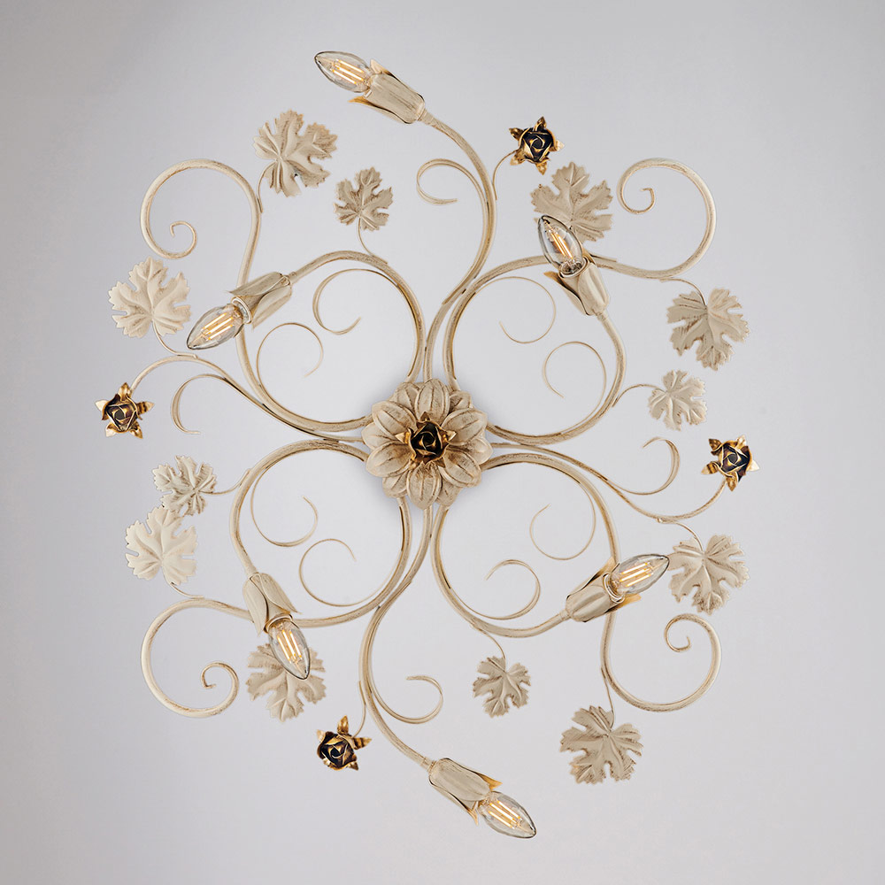Los materiales seleccionados, como el hierro, crean un efecto elegante y una agradable iluminación. Fabricada íntegramente en Italia, esta lámpara de techo garantiza fiabilidad, robustez y atención al detalle.
