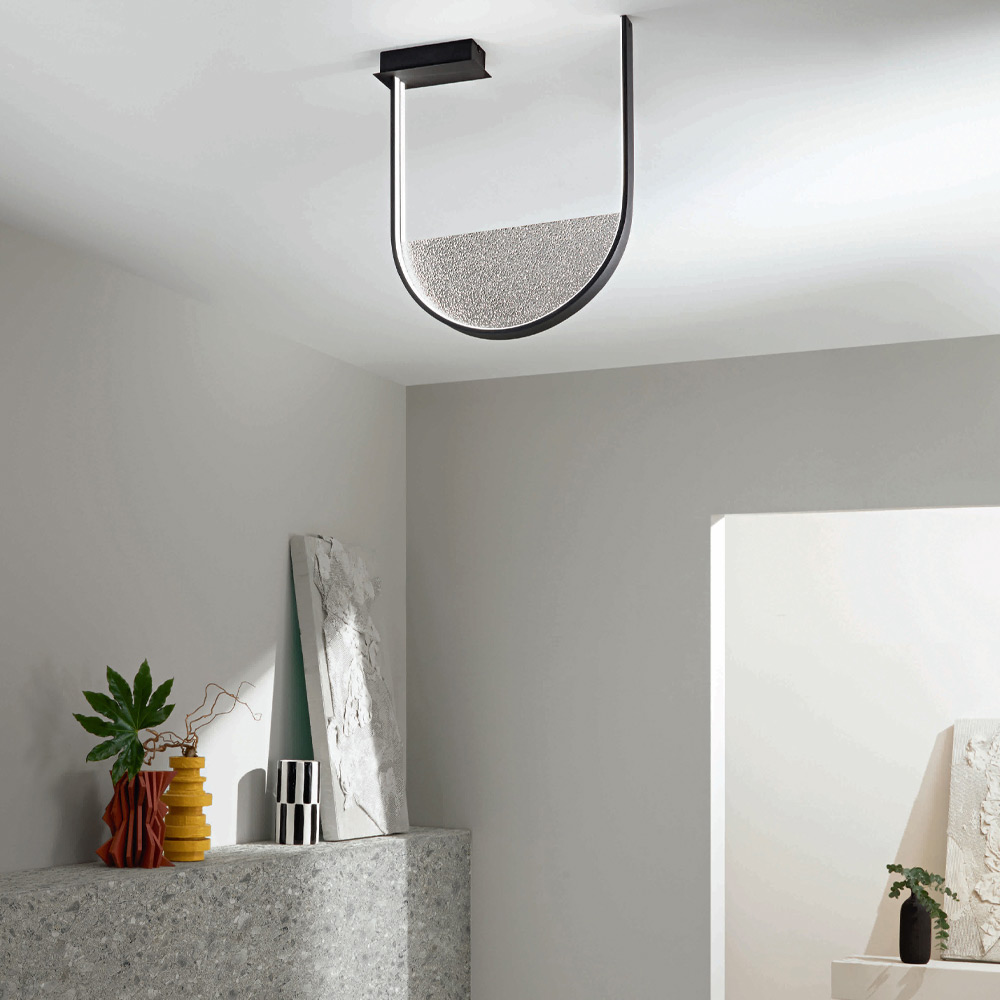 Plafón con luz LED regulable en metal y cristal Made in Italy