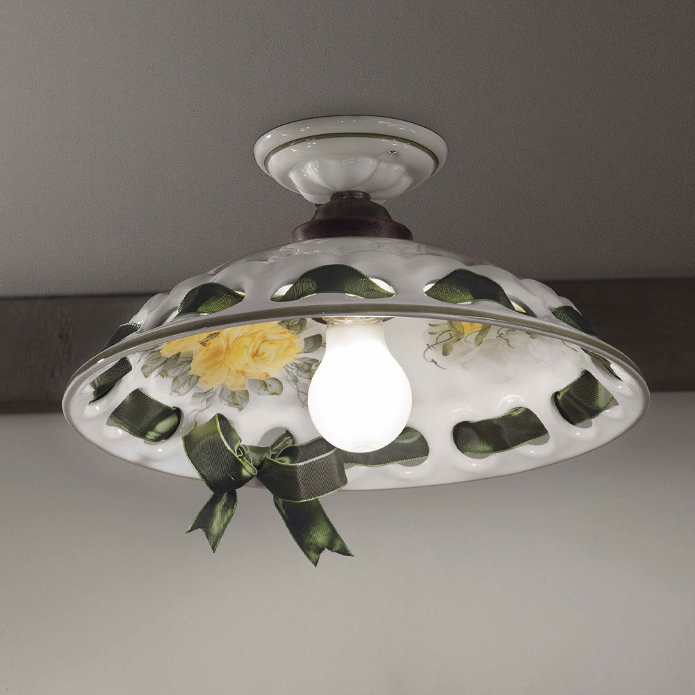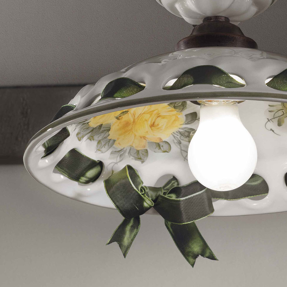 Plafón de metal y cerámica artesanal con cintas, fabricado en Italia por Ferroluce.