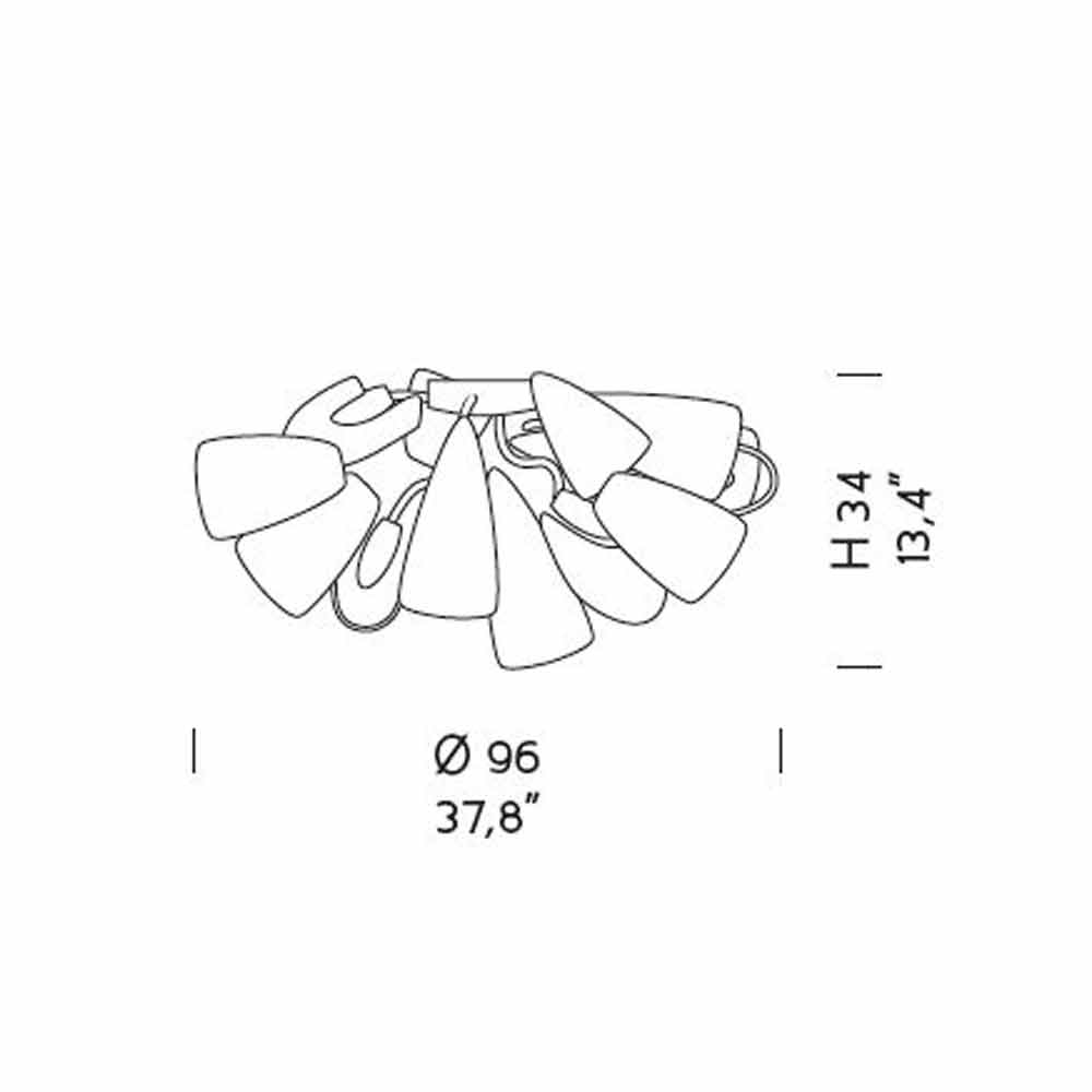 NB : la lámpara de techo está disponible en una amplia gama de colores diferentes y, al estar hecha a mano, es completamente personalizable también en forma y tamaño.