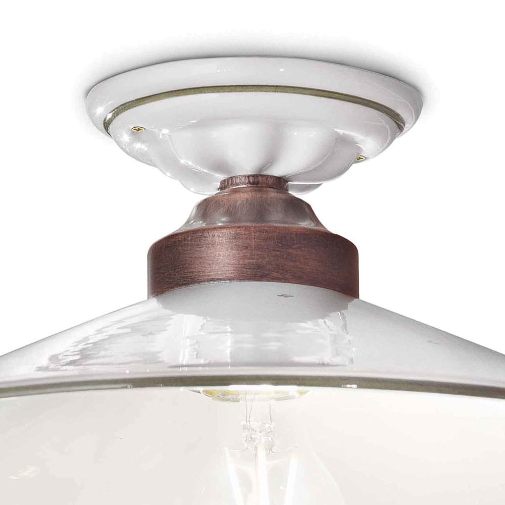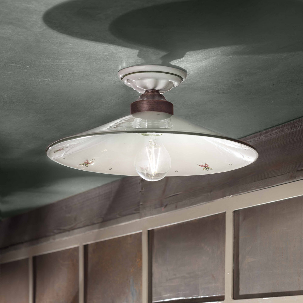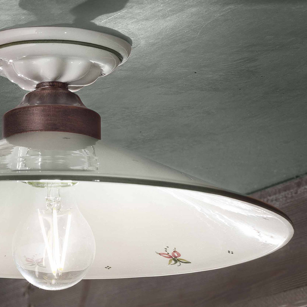 Lámpara de techo vintage en hierro y cerámica pintada a mano, 3 tamaños fabricada en Italia por Ferroluce.