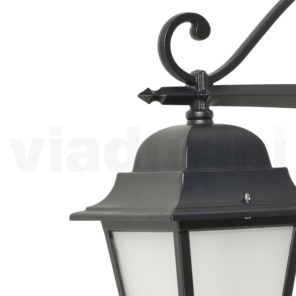 Lámpara de jardín realizada con estructura de aluminio inyectado con acabado antracita y difusor de cristal arenado , íntegramente Made in Italy.