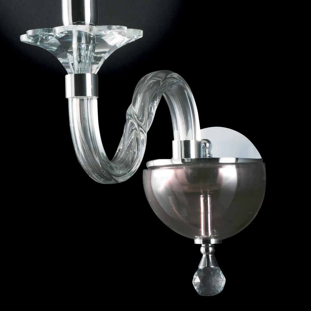 Aplique de pared de vidrio transparente, hecho a mano con adornos de cristal. accesorios de cromo.