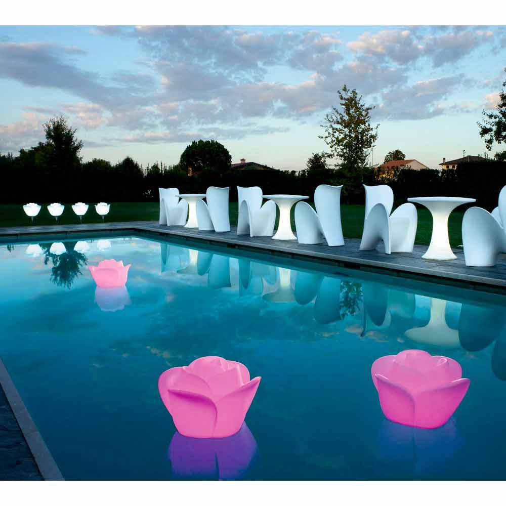 La rosa Baby Love Waterproof florece en el agua, solitaria, en hileras o en racimos, como un mágico nenúfar de luz flotando en piscinas y fuentes, nacido para iluminar las fiestas. Siempre tierna, sugerente, inconfundible. Baby Love , una lámpara ornamental con un estilizado perfil rosa que puede adoptar diferentes formas, una original lámpara de pie disponible en varias alturas, una elegante lámpara de pie, lámpara de techo, aplique de pared y lámpara de exterior en las versiones Waterptoof y Garden, donde está su diseño diseñado para favorecer la eliminación más rápida y completa del agua de lluvia.