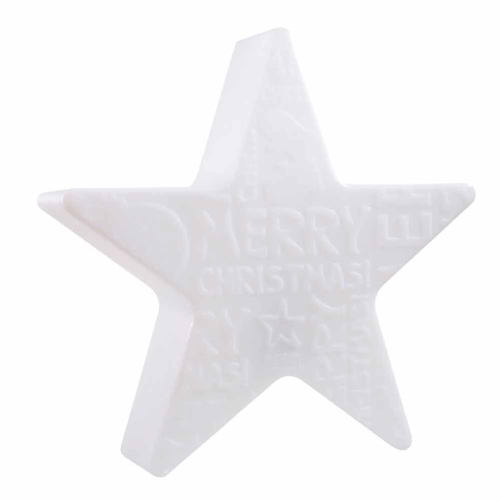 Esta lámpara de sobremesa para interior o exterior se caracteriza por su llamativo diseño en forma de estrella con letras de temática navideña en relieve en la parte delantera, mientras que la parte trasera permanece lisa. Un punto de luz decorativo que deleita el alma y el corazón y crea un ambiente chispeante y moderno, ideal para el período navideño .