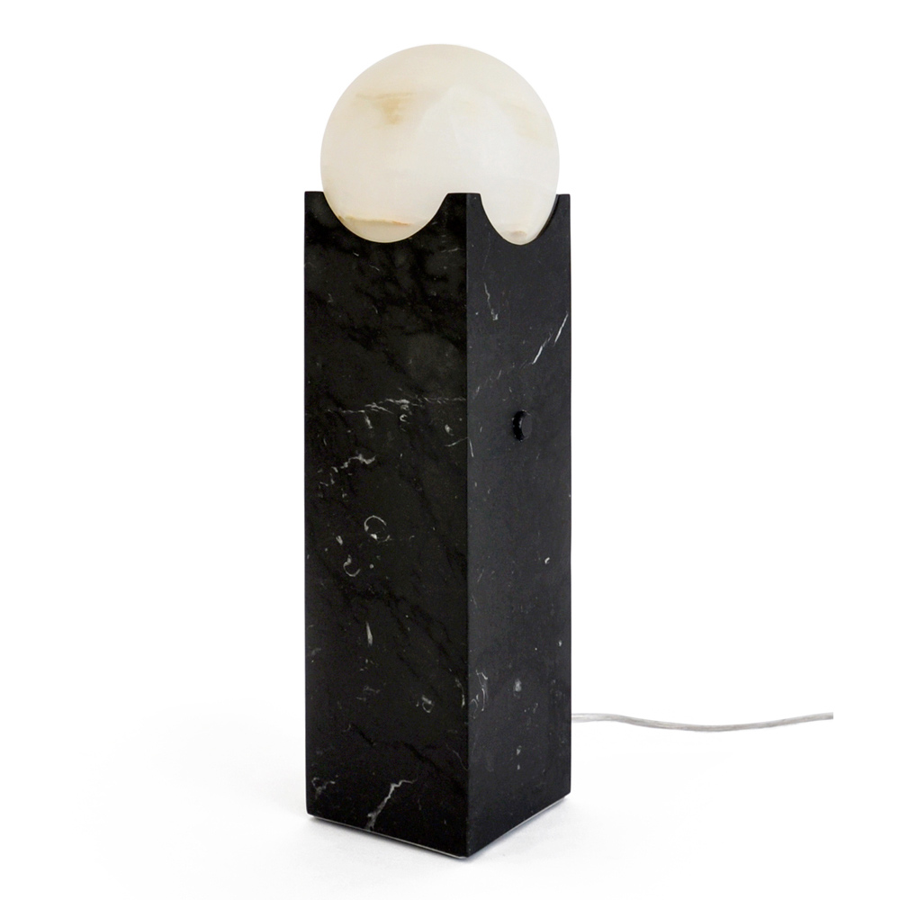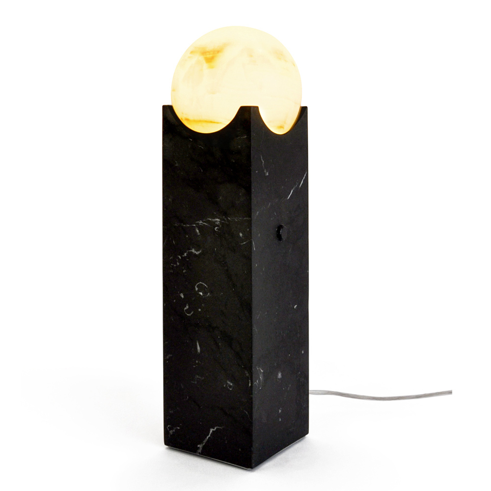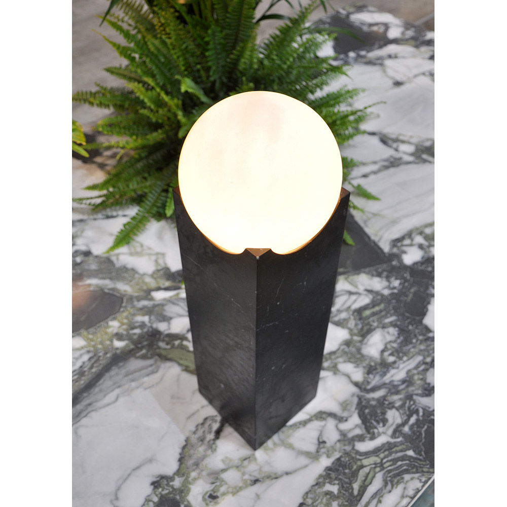 Esta lámpara de mesa representa una fusión entre la majestuosidad del mármol negro y la pureza de una esfera de luz. El diseño atrevido y moderno crea un contraste visual fuerte pero equilibrado, perfecto para la decoración contemporánea de quienes aman estar rodeados de belleza y lujo .