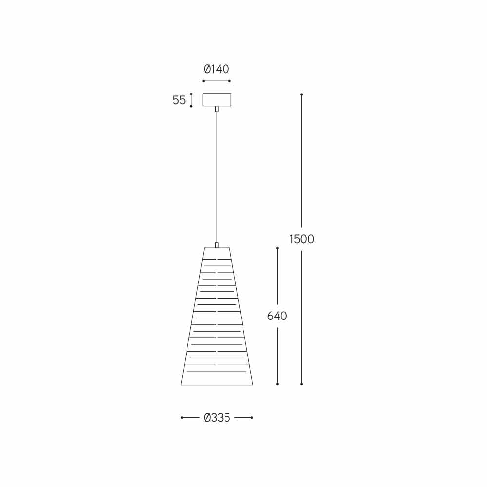 | Medidas de la lámpara | Diámetro 335 x H 640 mm; H total con cable y roseta 1500 mm |
