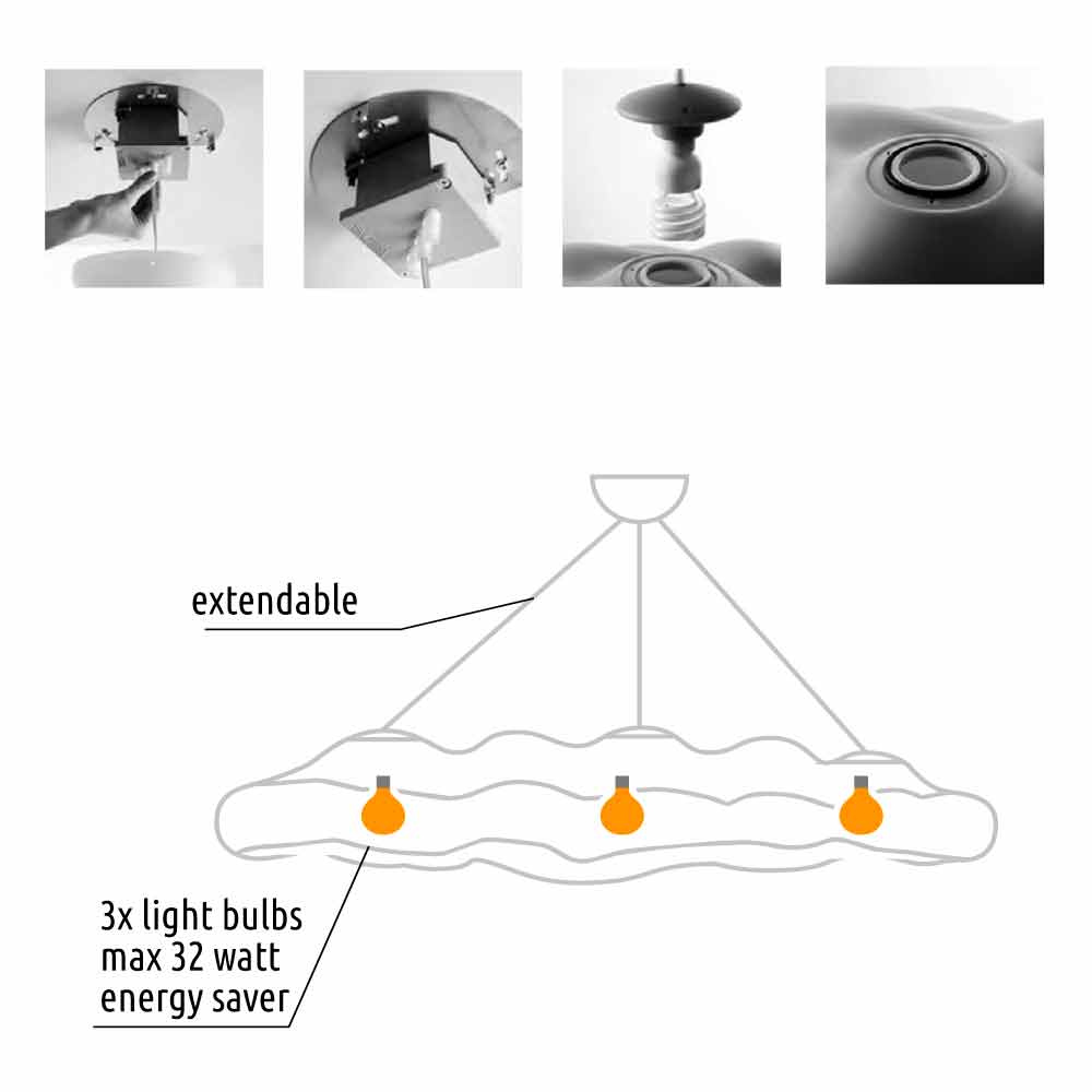 Tipo de iluminación: 3 x máx. 32W E27 fluorescente compacta 230V 50/60 Hz (no suministrada).
