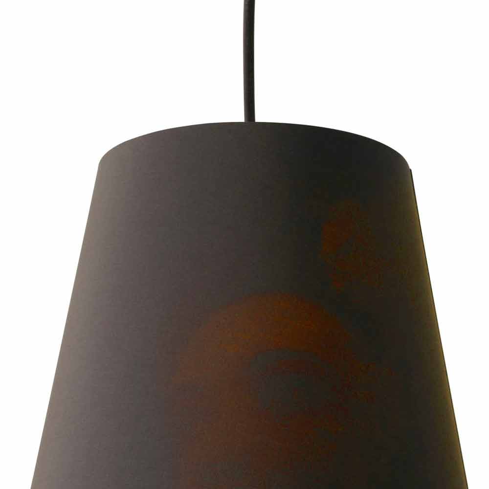 La lámpara está realizada en tejido de lino antracita , material que despierta especial interés ya que es capaz de crear un objeto de sugestiva emoción, con el fin de captar la atención. Impresión interna.