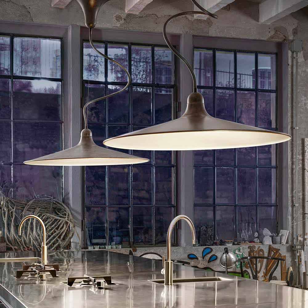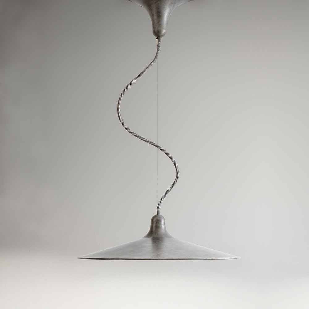 Iluminación vintage: suspensión de estilo retro en aluminio envejecido, Sassmaòr de Aldo Bernardi, made in Italy.