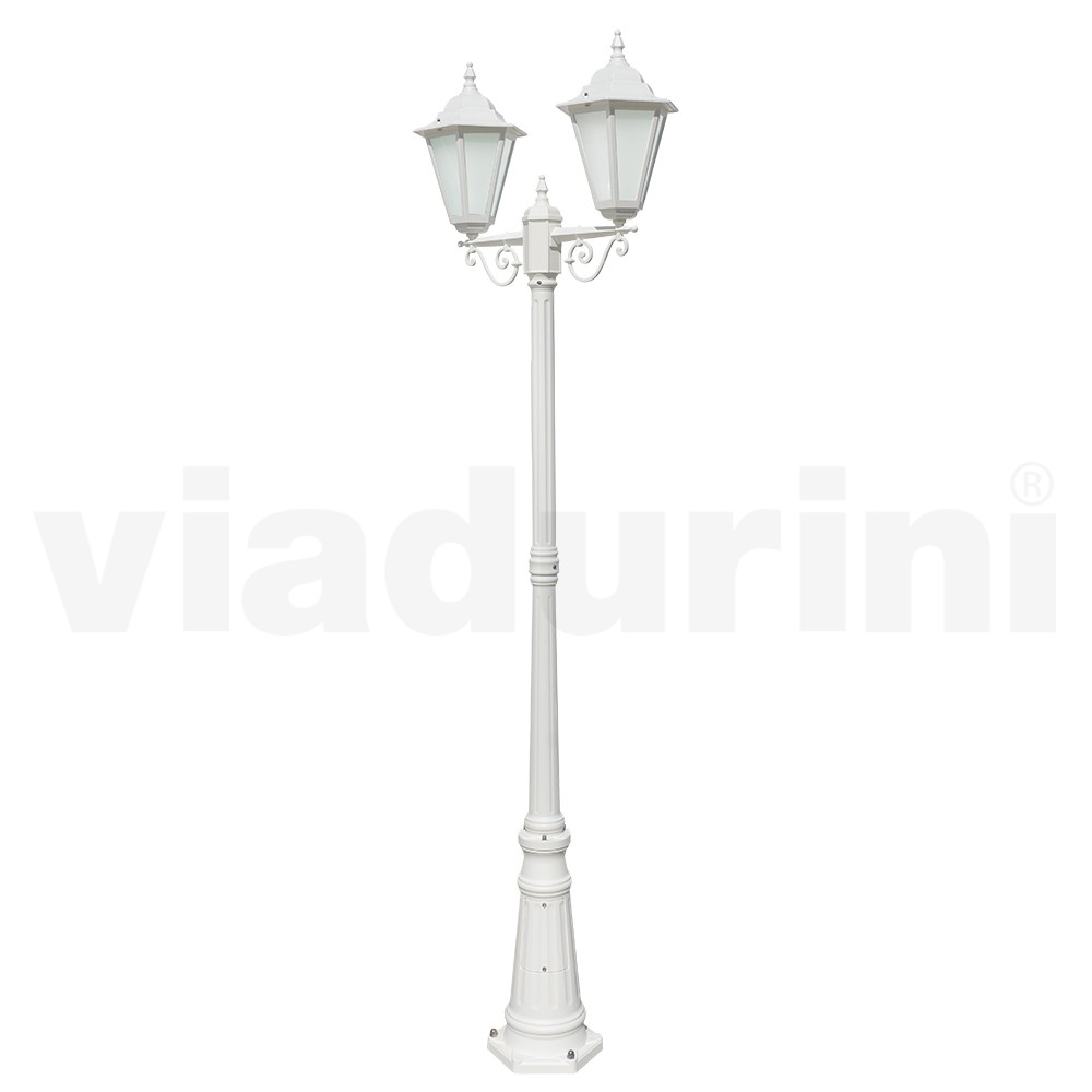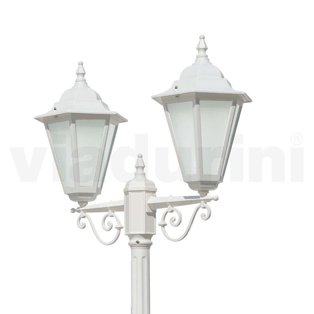 Farola de 2 luces con estructura de aluminio inyectado , acabado blanco gofrado y difusor de cristal íntegramente fabricada en Italia . Completo con tornillos de acero inoxidable. Una solución de decoración capaz de combinar funcionalidad y estilo, ofreciendo una iluminación de calidad y al mismo tiempo completando el ambiente circundante gracias a un toque refinado y fascinante . Ideal para espacios como jardines, avenidas y paseos pero también ambientes contract como bares y restaurantes.