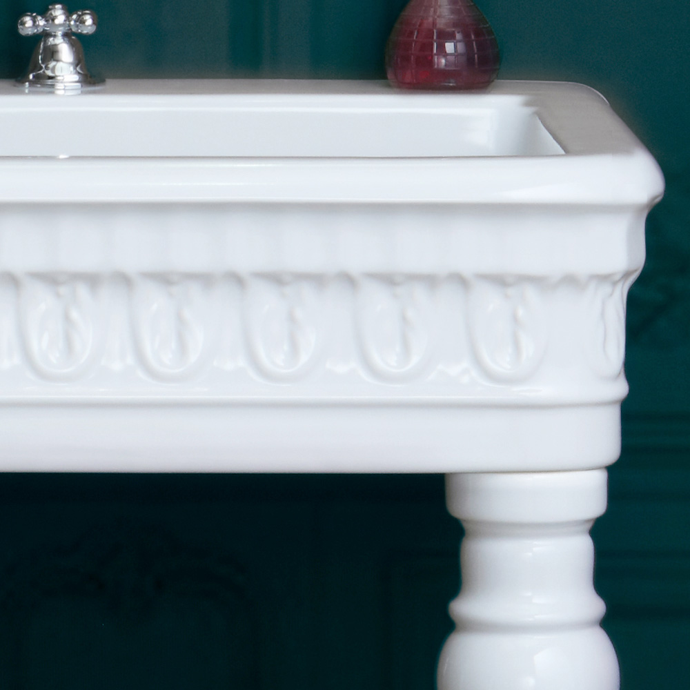Lavabo consola en cerámica blanca elaborado artesanalmente a través de una producción 100% Made in Italy . Majestuoso e imponente, este complemento de decoración con un diseño clásico y refinado nace del deseo de dar vida a una solución capaz de crear una perfecta armonía tanto en espacios clásicos como en ambientes con mobiliario moderno dentro de los cuales construye un contraste inusual para un ambiente creativo y original. efecto .