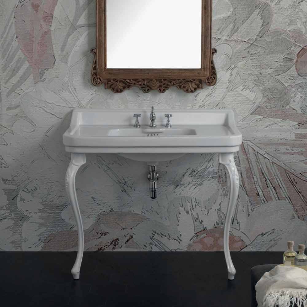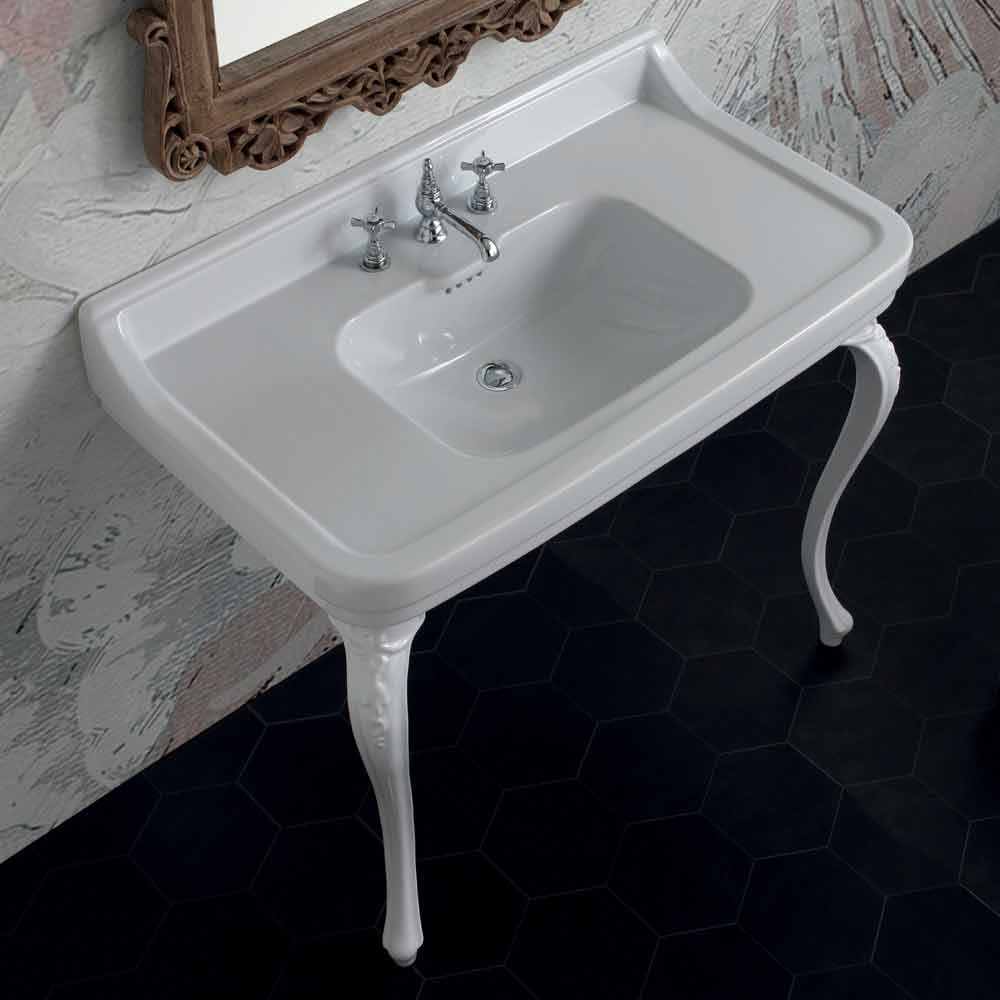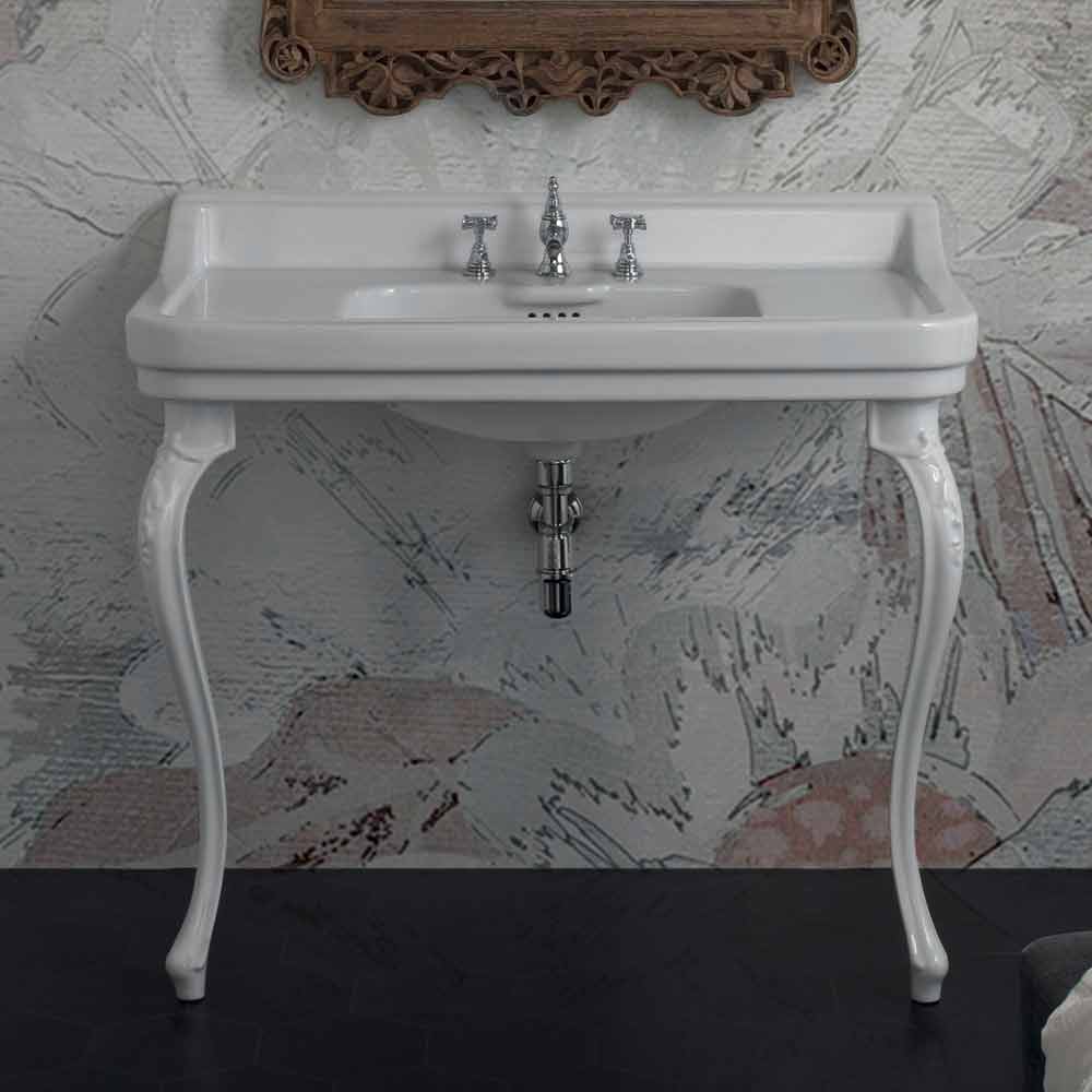 Lavabo consola de diseño clásico en cerámica fabricado en Italia, Swami