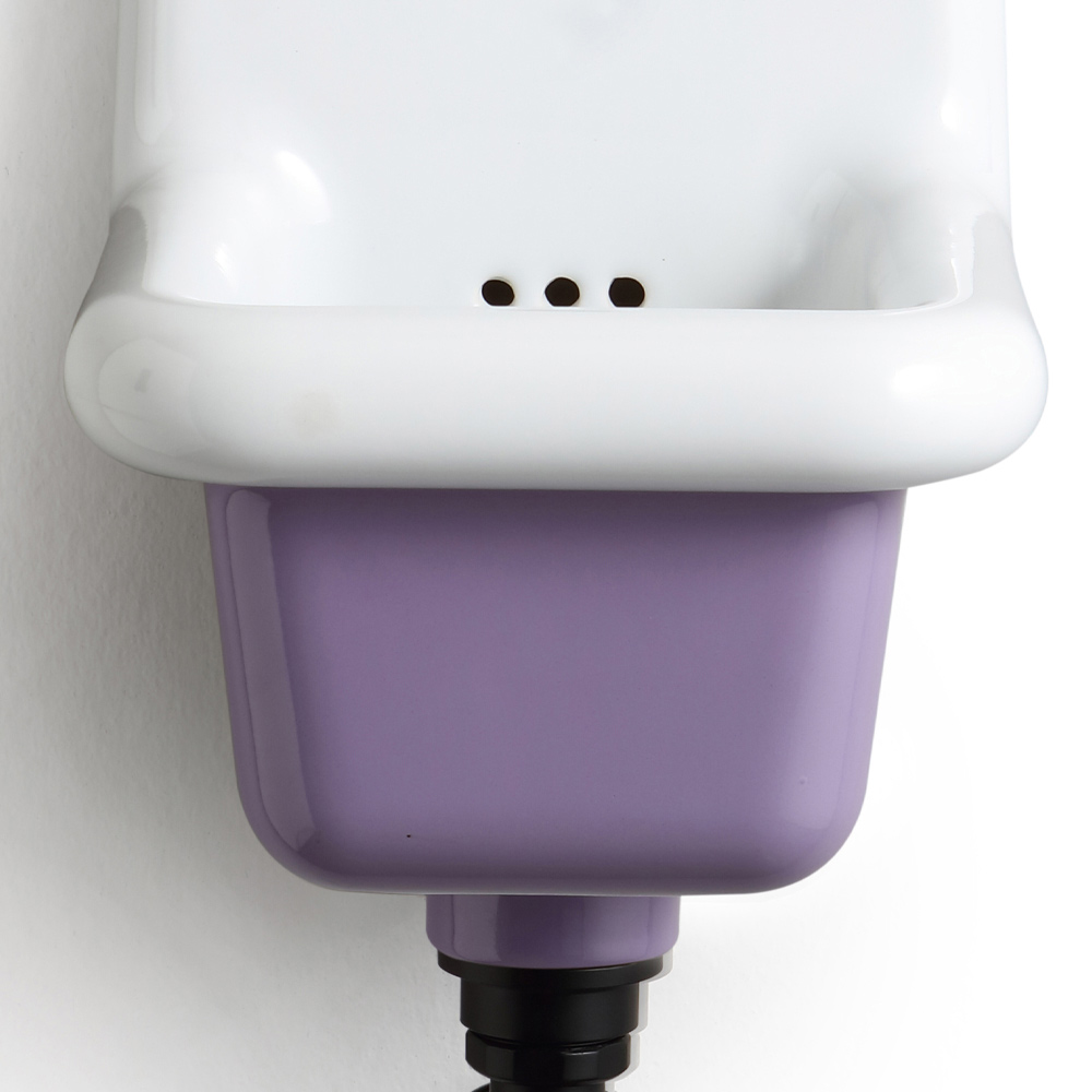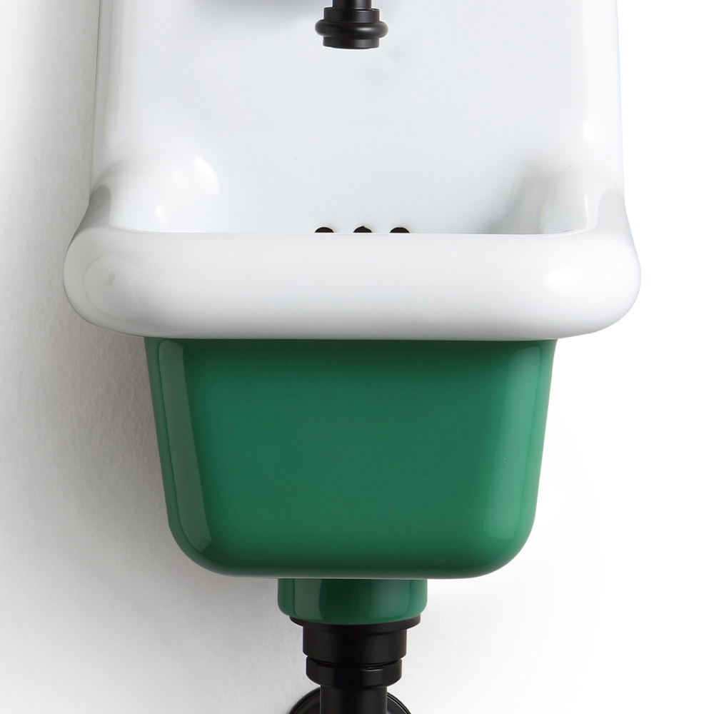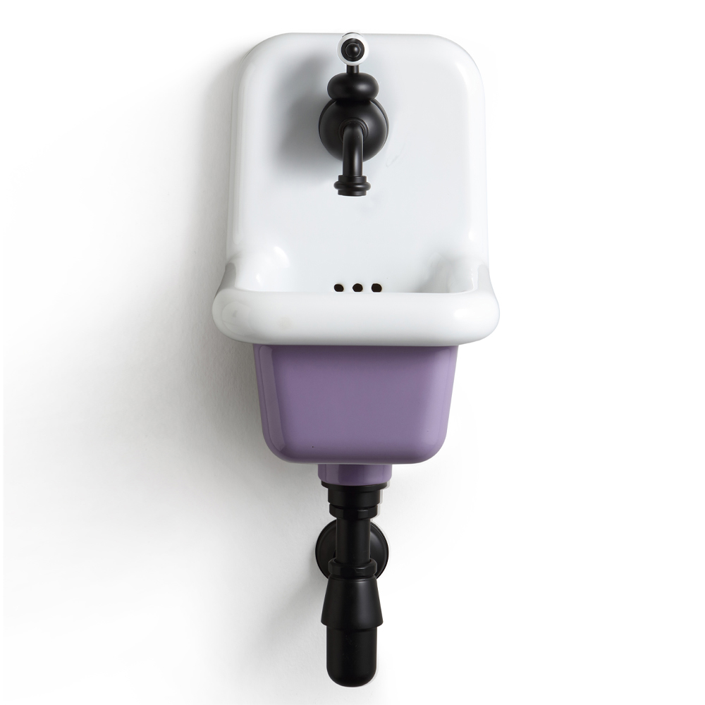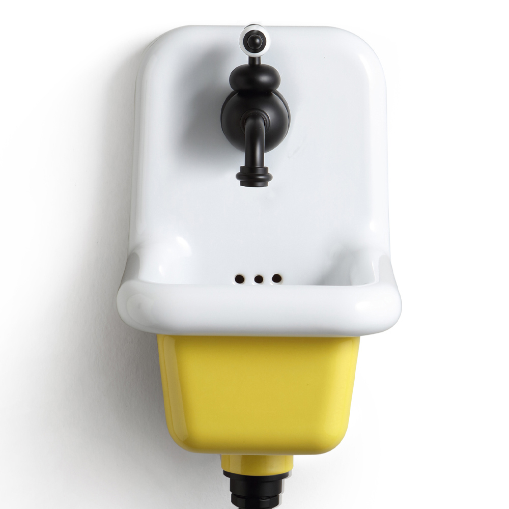 Lavabo suspendido para baño en cerámica blanca y coloreada.
