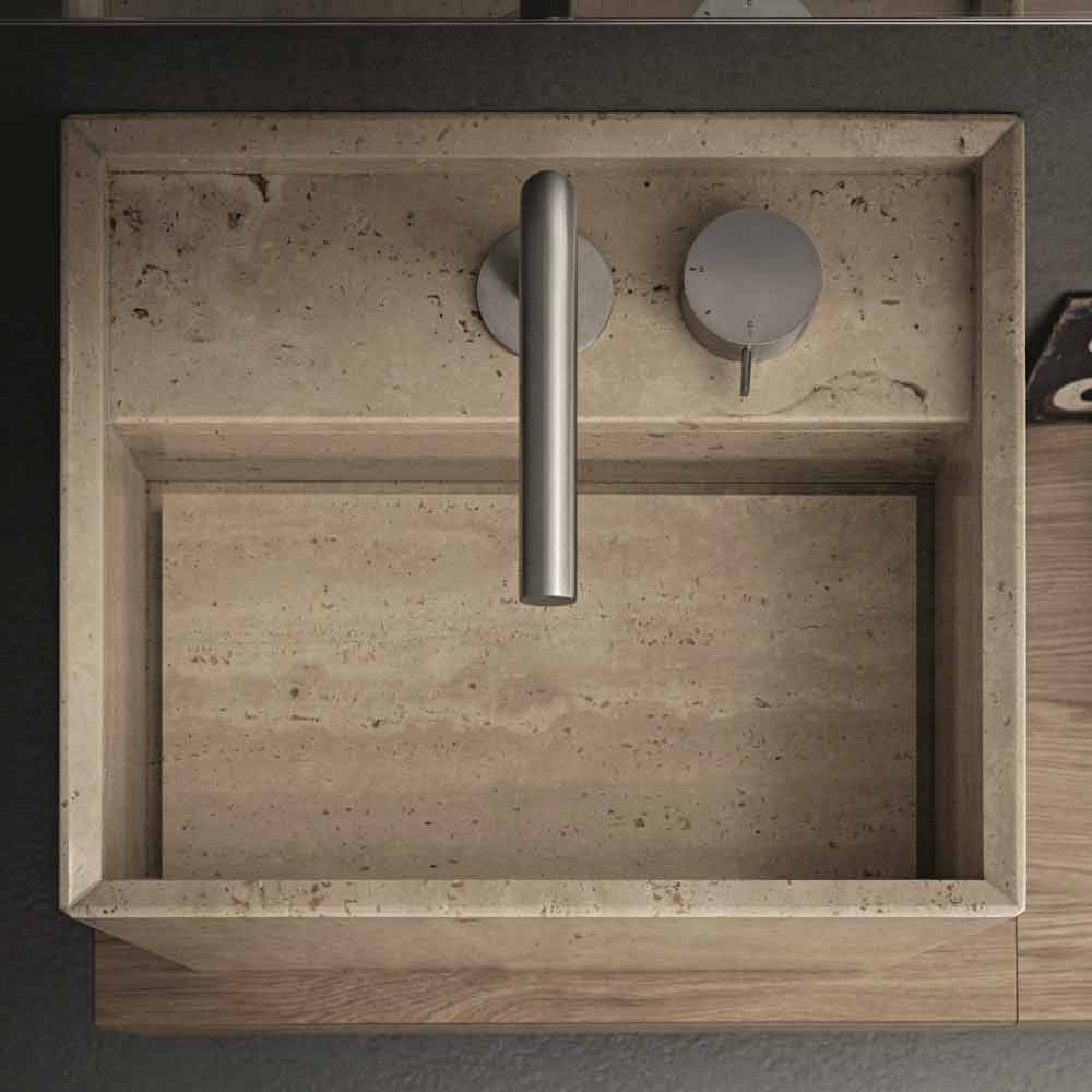 Lavabo sobre encimera cuadrado, de diseño moderno en piedra natural, sin orificio de desagüe con orificio para grifería.
