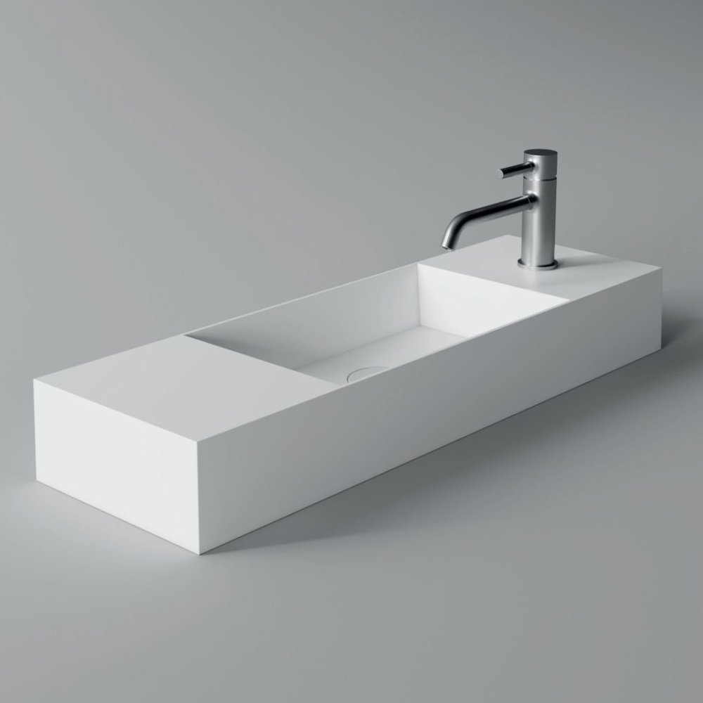 Lavabo de baño sobre encimera o suspendido en cerámica blanca o de color Made in Italy.
