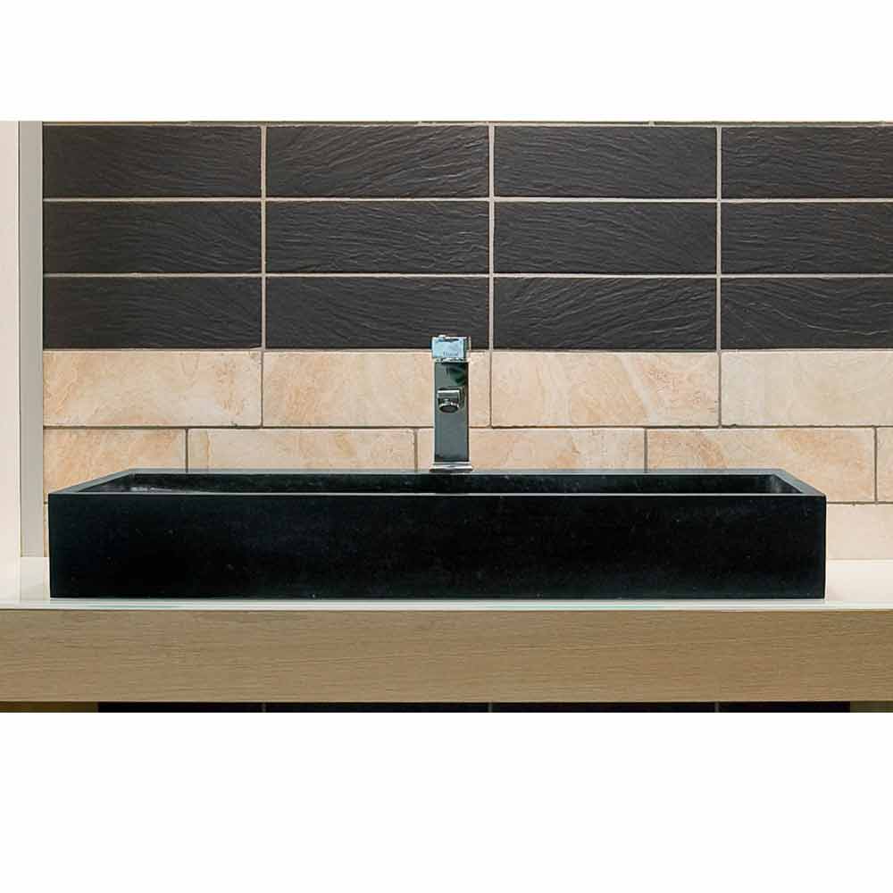 Lavabo rectangular sobre encimera realizado en basalto negro modelo Chao