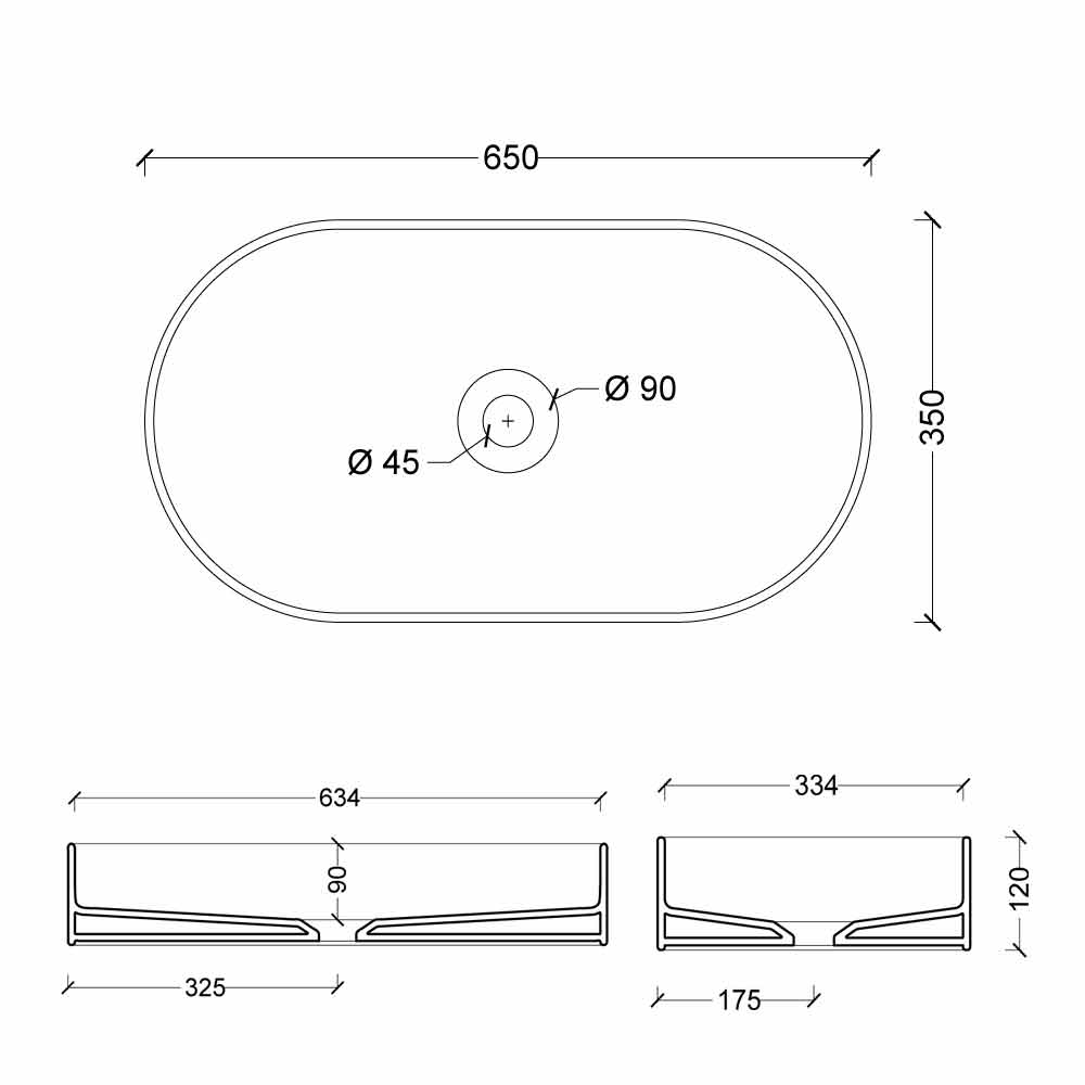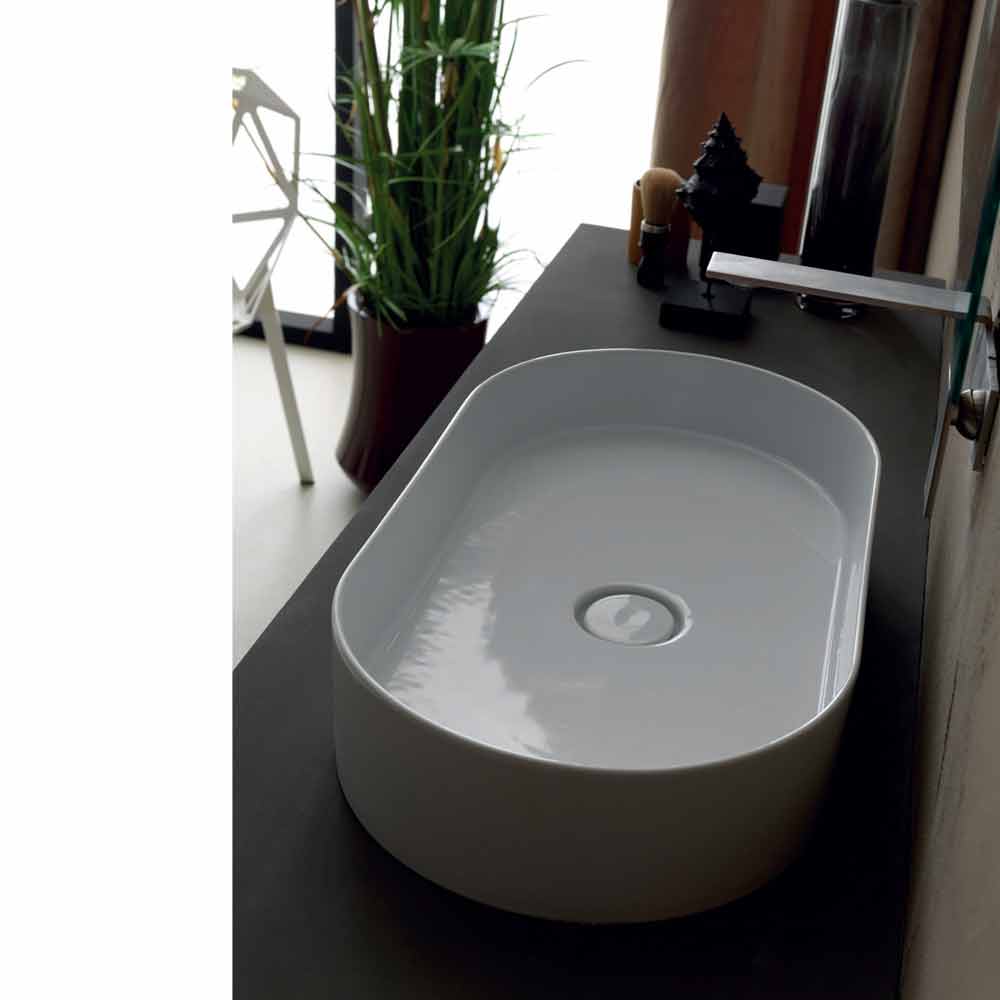 Lavabo sobre encimera de cerámica de diseño moderno Sun made Italy 65x35 cm