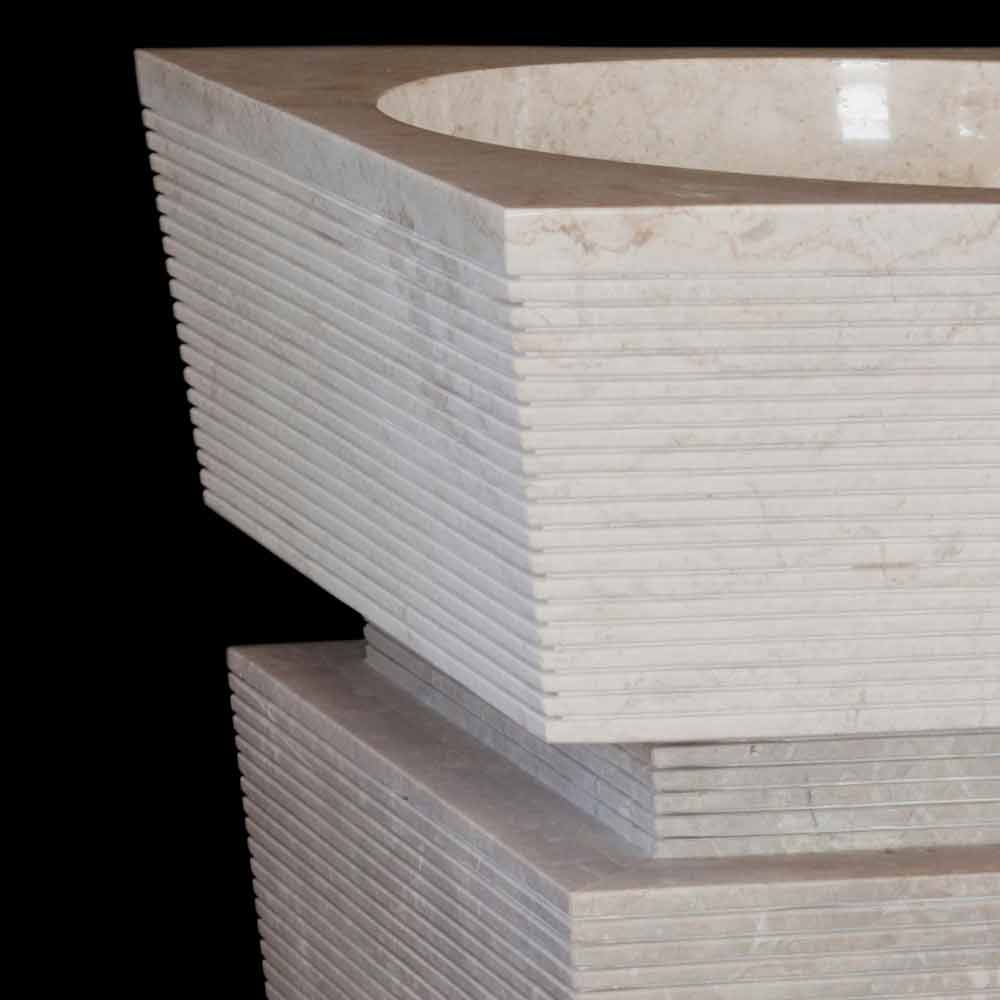 Lavabo de columna de piedra natural blanca hecho a mano modelo Sire.