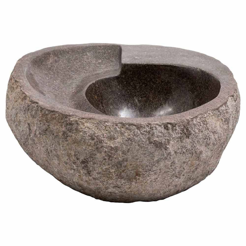 Busca es un fantástico lavabo de encimera circular de forma irregular hecho a mano en piedra de río.