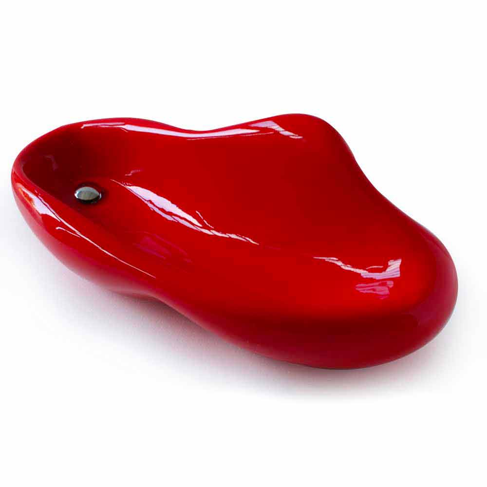 Original, casi en forma de boca, este lavabo de diseño es apto tanto para dormitorios modernos como para baños de última generación.