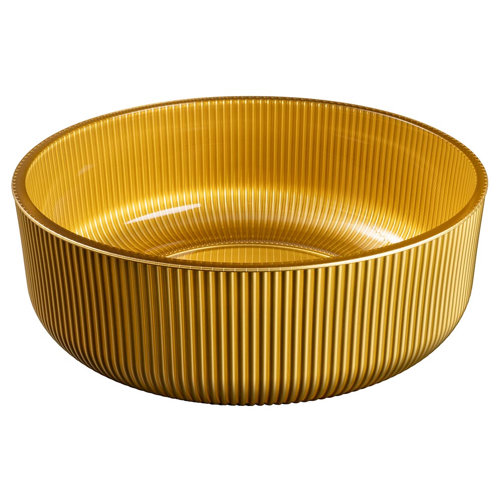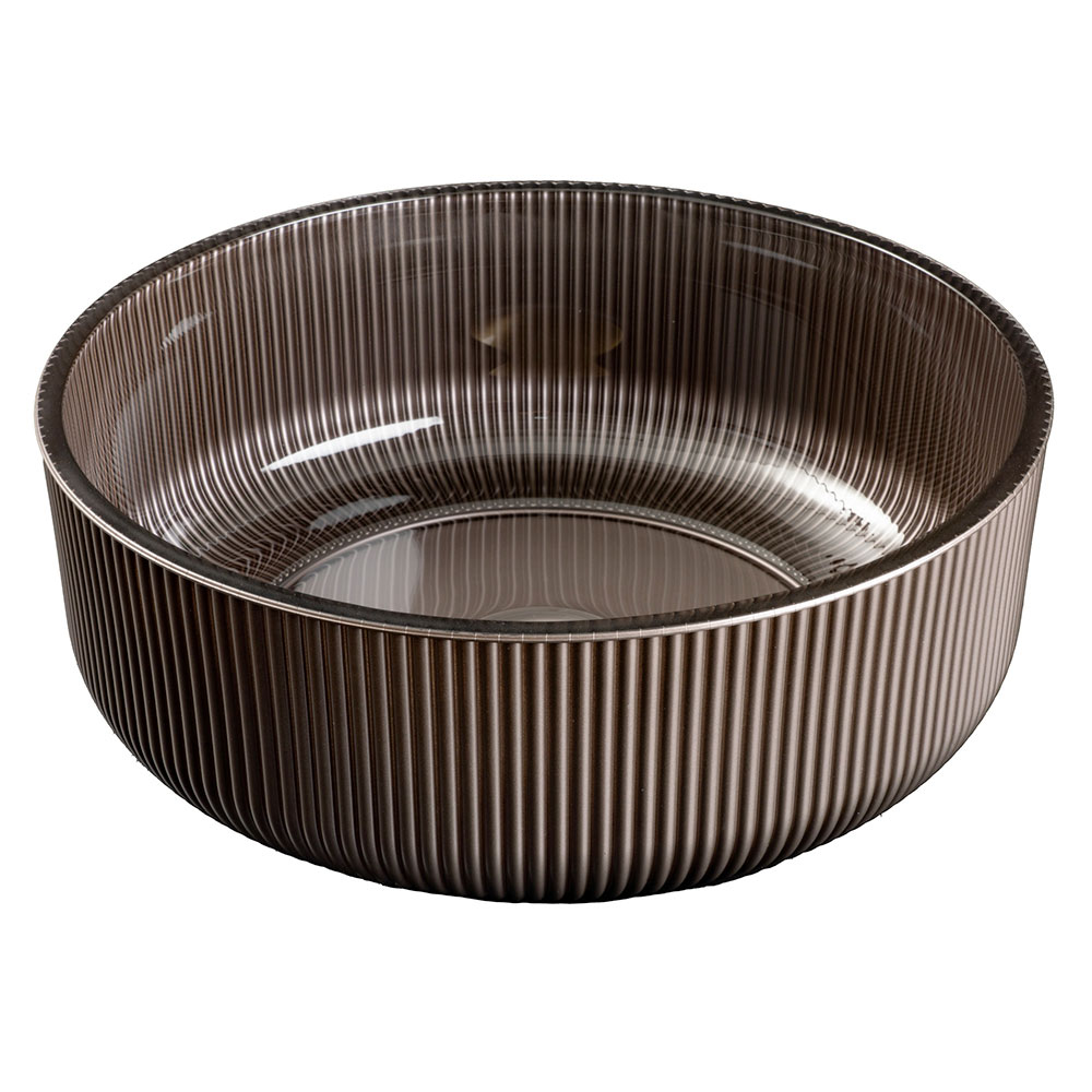 Un elemento de decoración que se convierte en el protagonista del baño, este lavabo de cristal veneciano combina la maestría artesanal con el refinamiento estético típico del Made in Italy . Fabricado en cristal resinado y pintado con finos acabados, destaca por su superficie exterior con un elegante patrón de rayas que crea singulares juegos de luz y reflejos.
